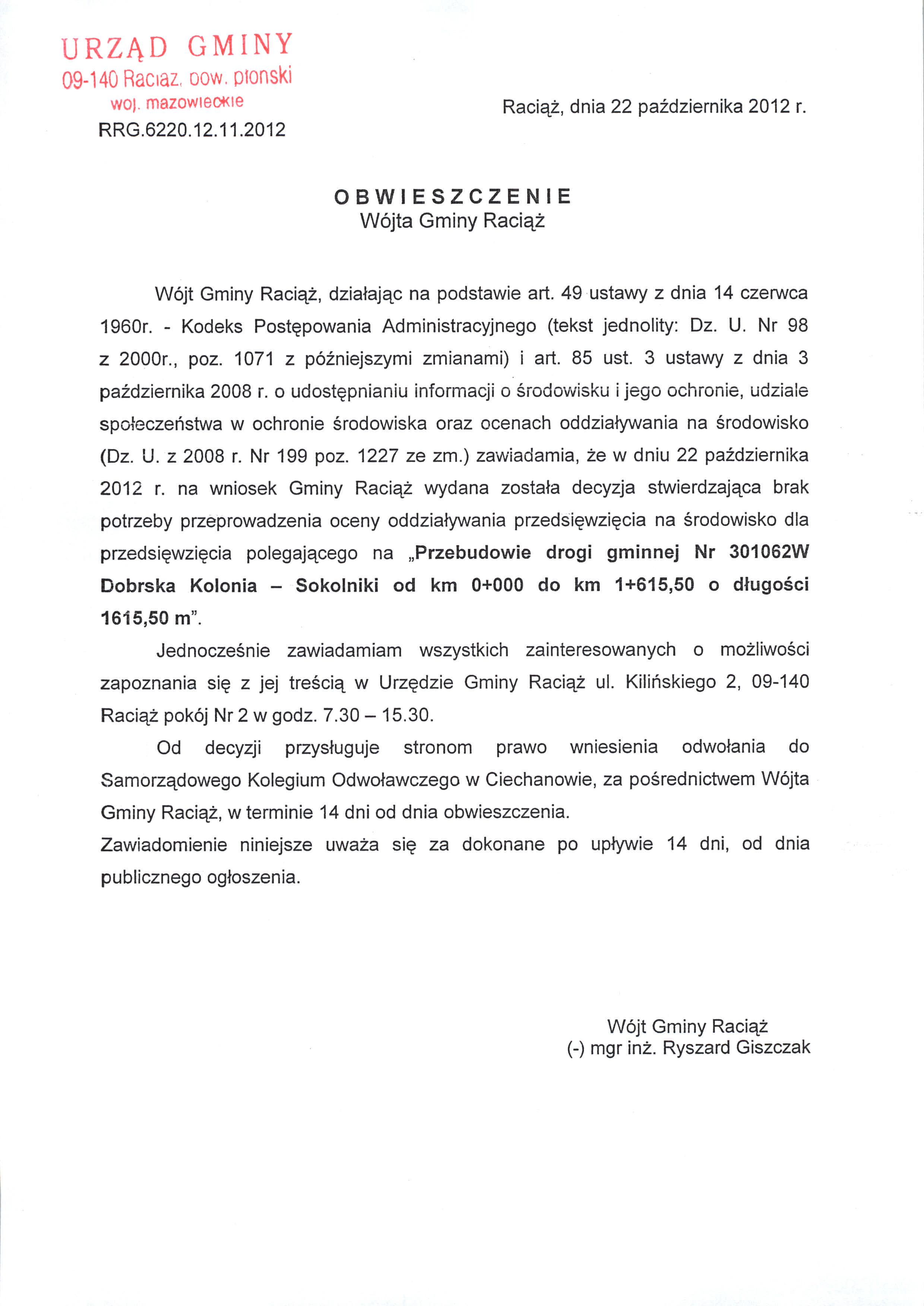 Obwieszczenie Wójta Gminy Raciąż - Obwieszczenia - Bip Gmina Raciąż