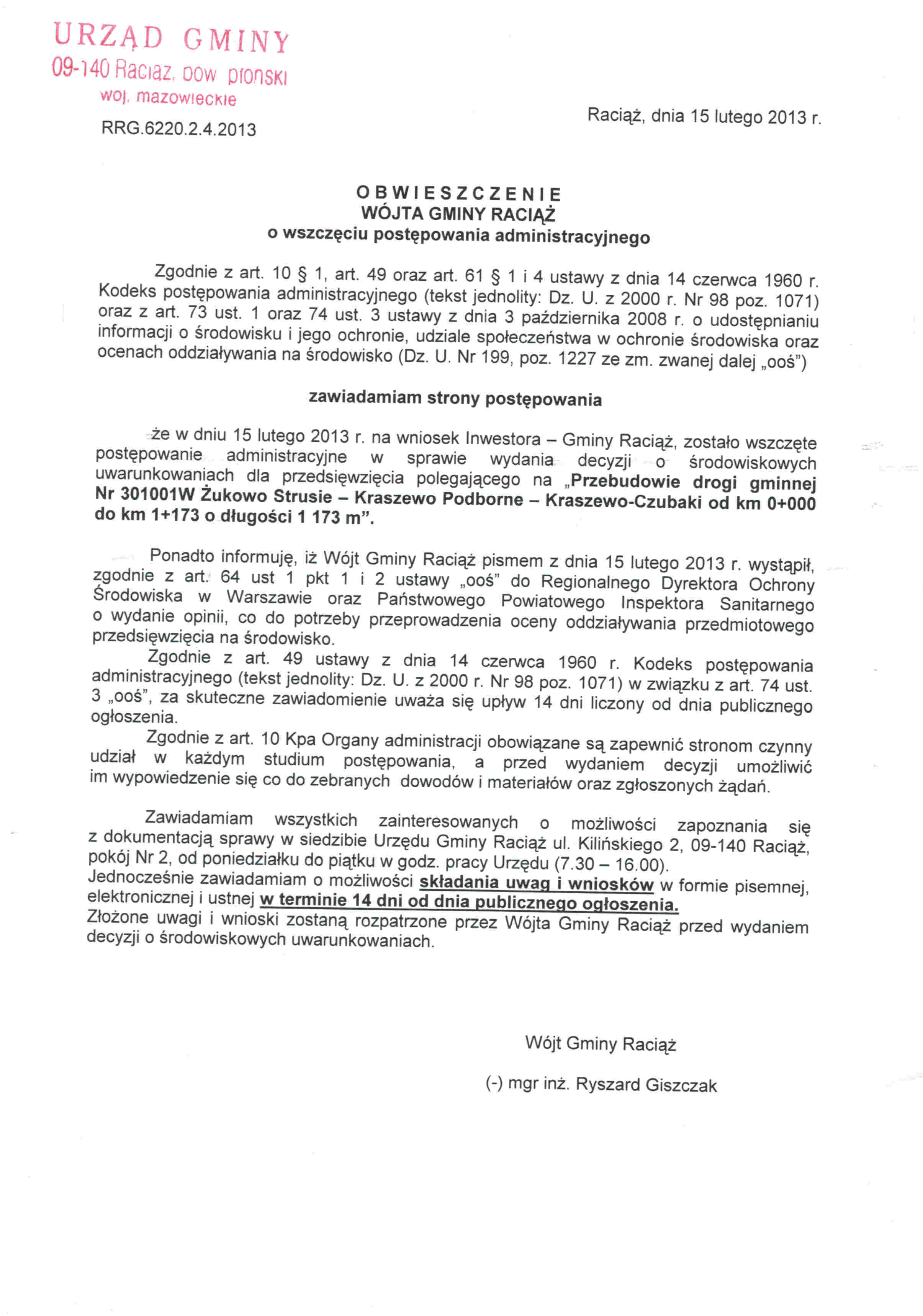 Obwieszczenie Wójta Gminy Raciąż o wszczęciu postępowania administracyjnego - Obwieszczenia - Bip Gmina Raciąż