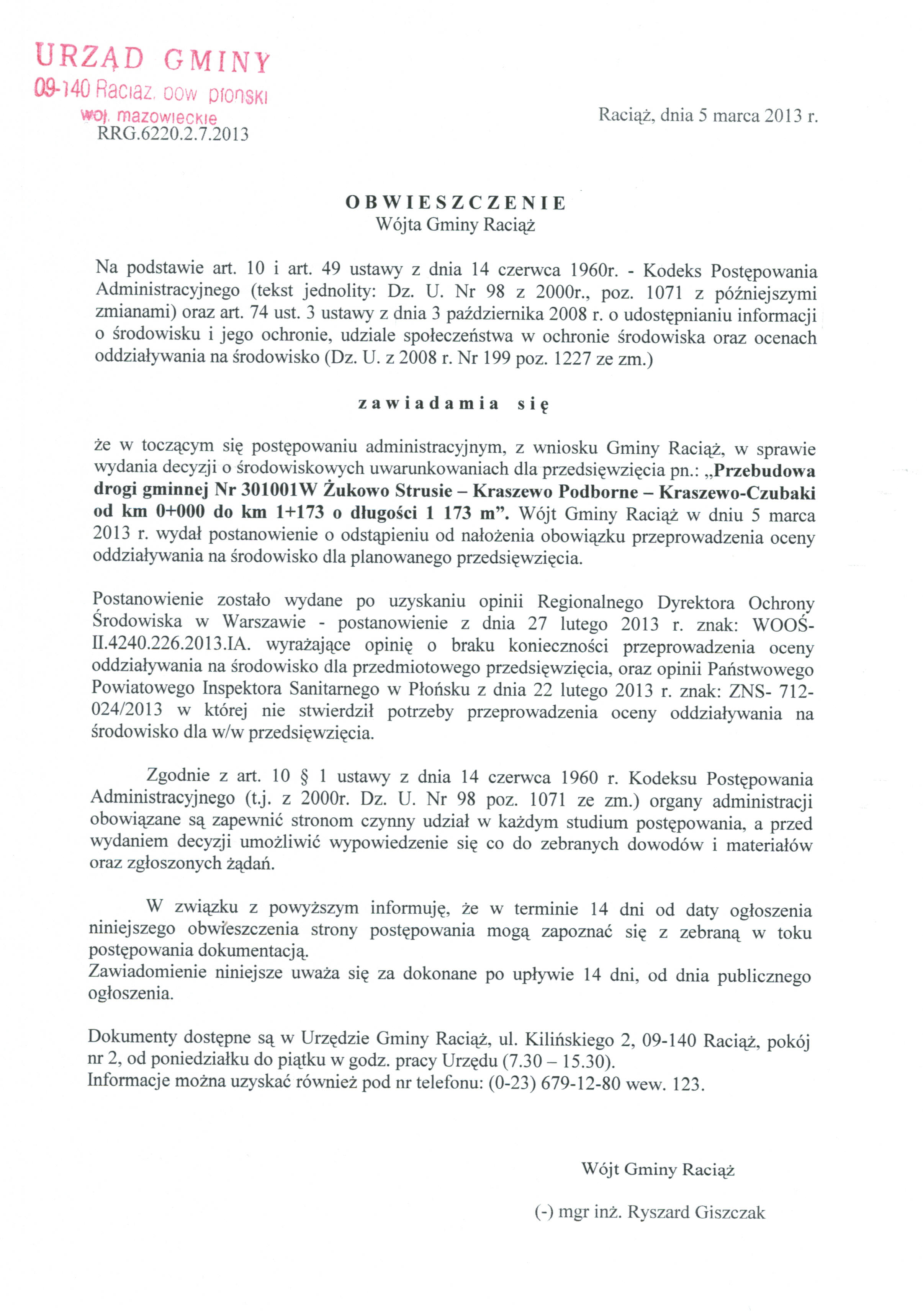 Obwieszczenie Wójta Gminy Raciąż - Obwieszczenia - Bip Gmina Raciąż
