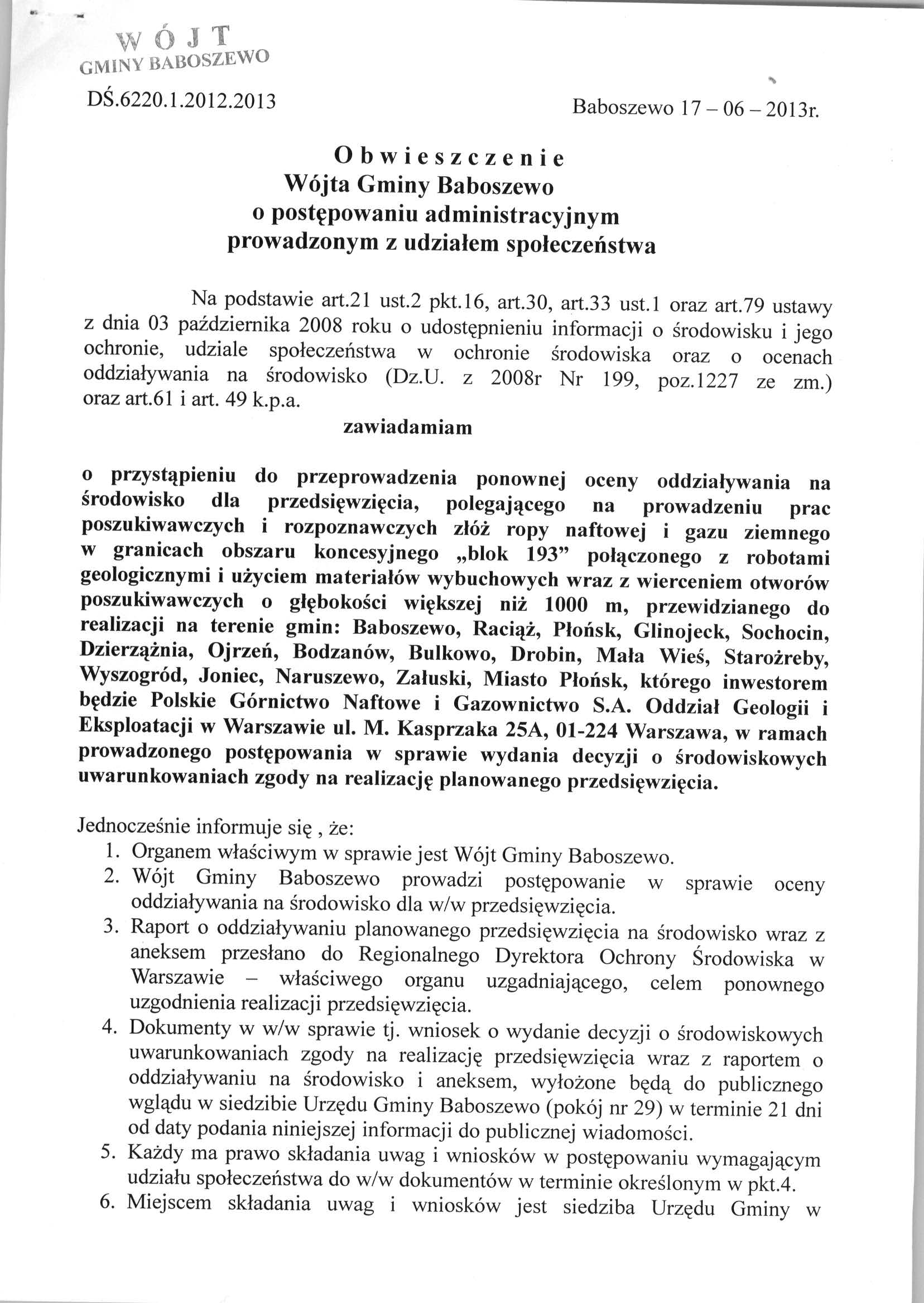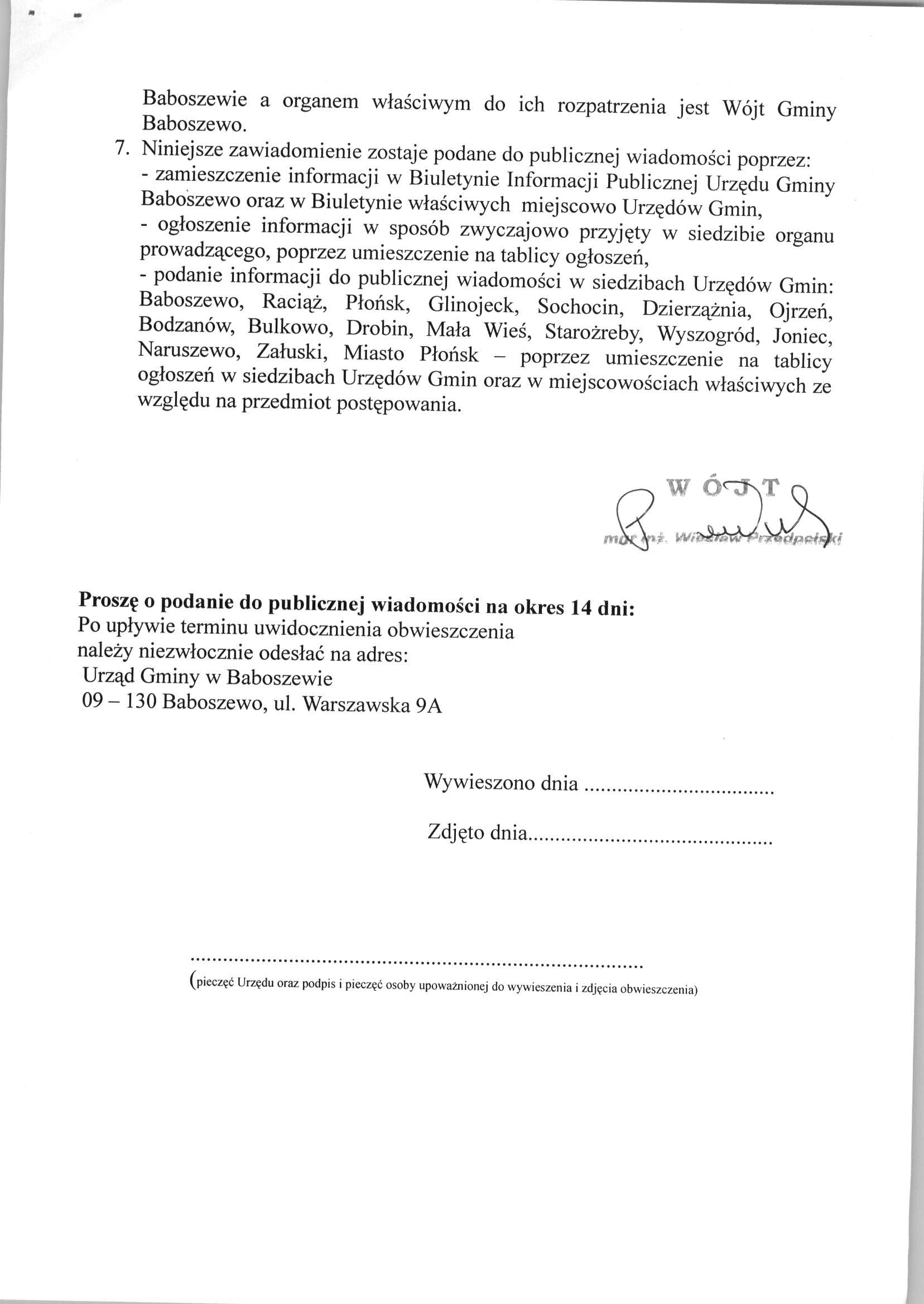 Obwieszczenie Wójta Gminy Baboszewo - Obwieszczenia - Bip Gmina Raciąż
