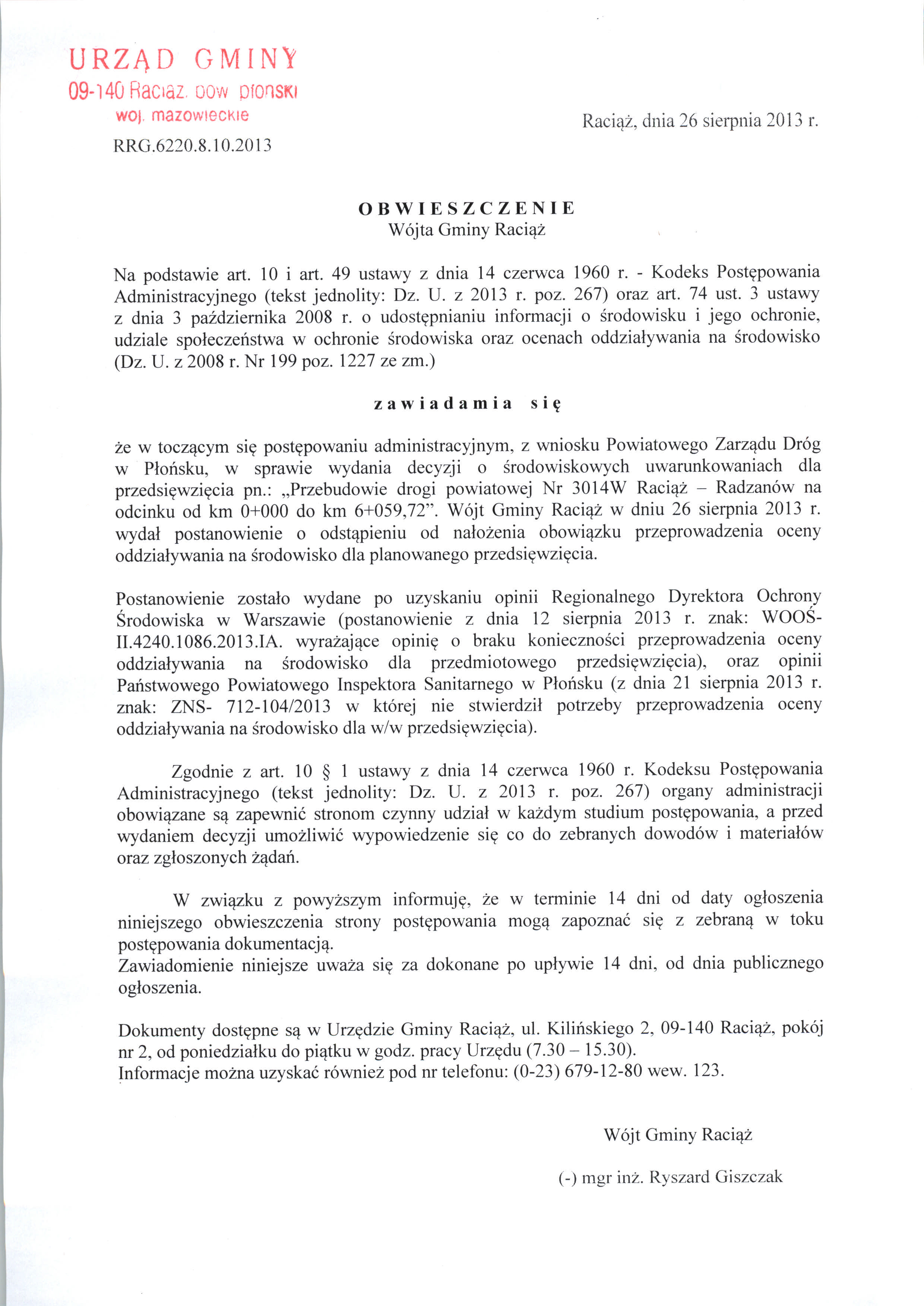 Obwieszczenie Wójta Gminy Raciąż - Obwieszczenia - Bip Gmina Raciąż
