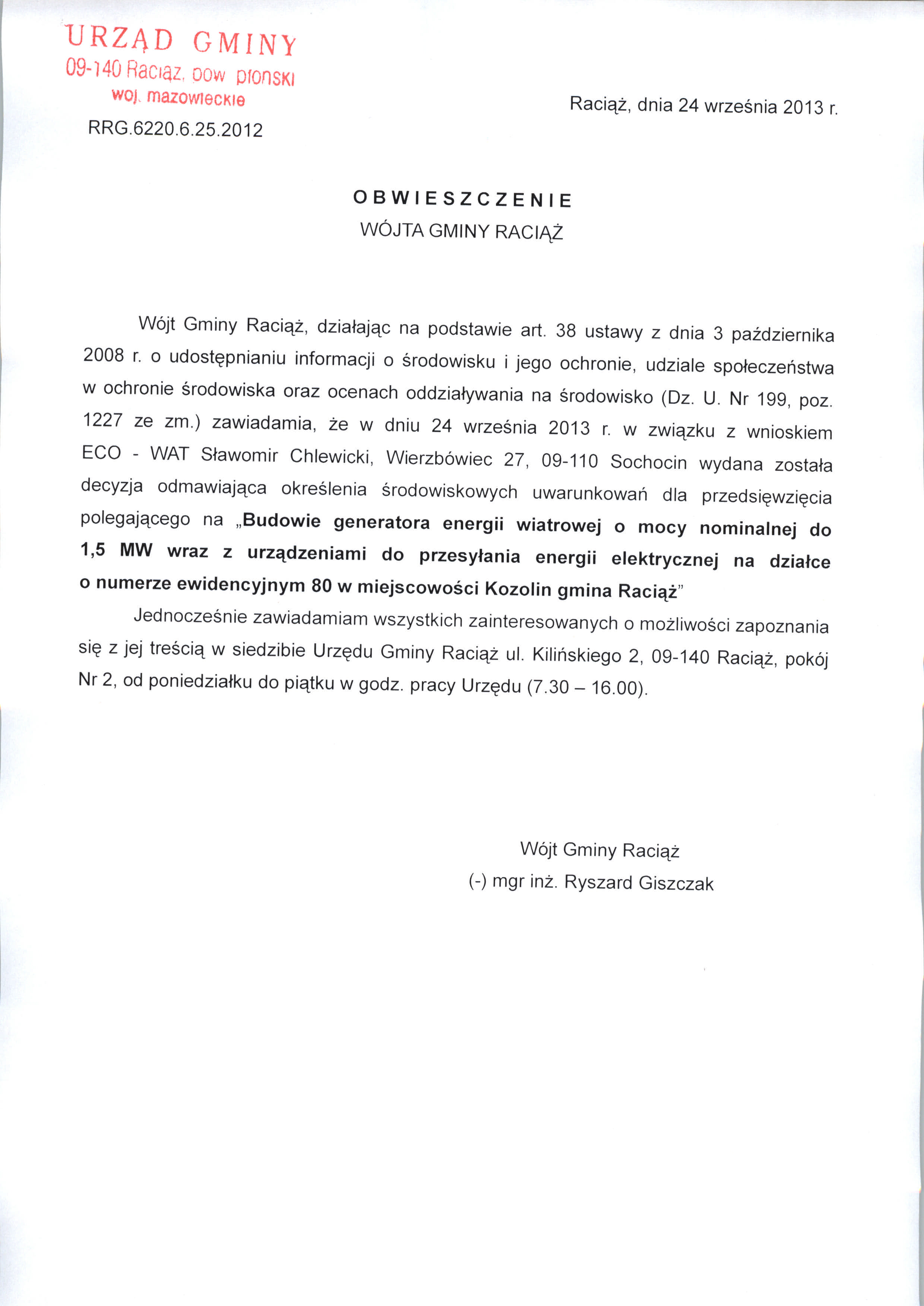 Obwieszczenie Wójta Gminy Raciąż - Obwieszczenia - Bip Gmina Raciąż