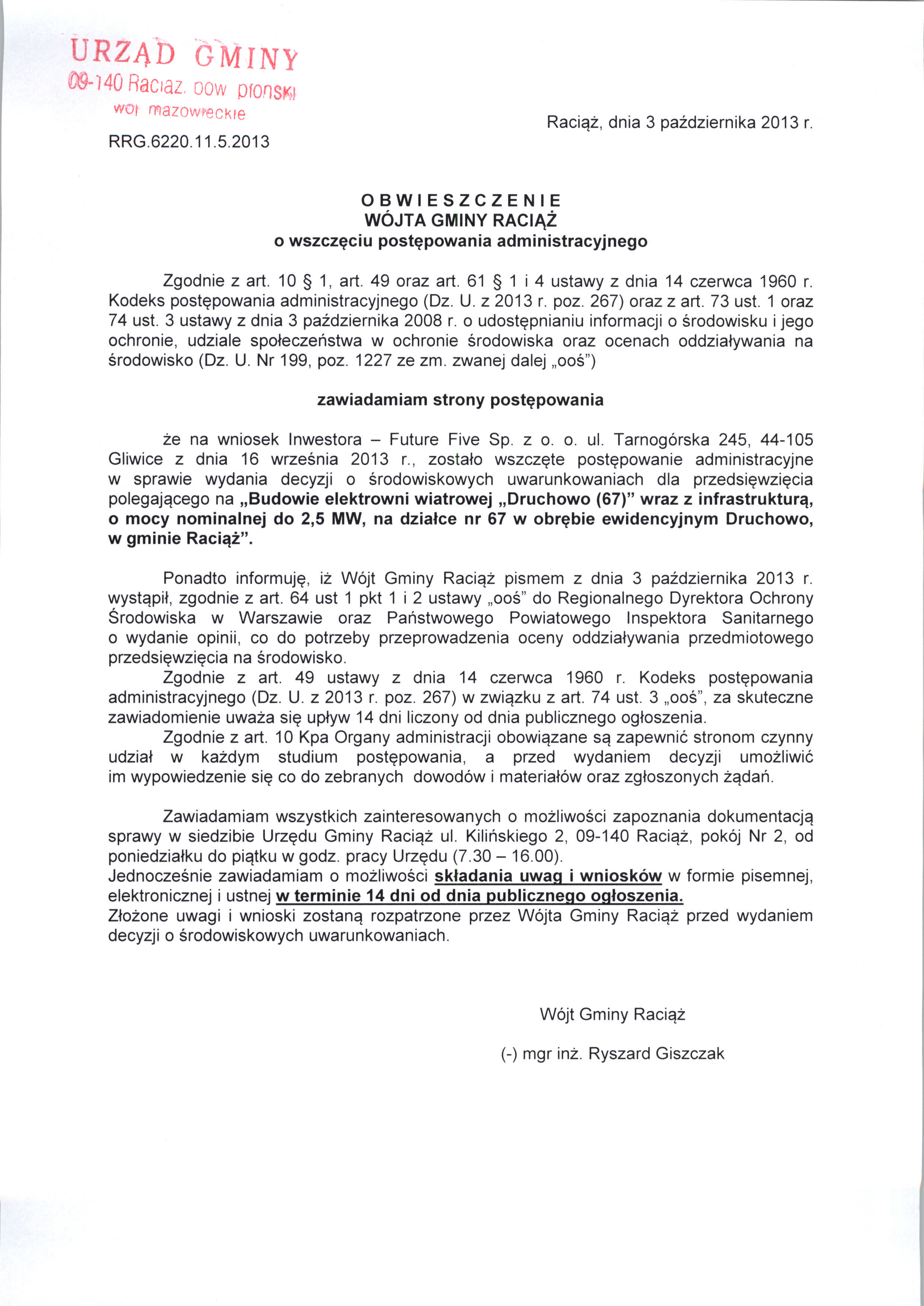 Obwieszczenie Wójta Gminy Raciąż - Obwieszczenia - Bip Gmina Raciąż