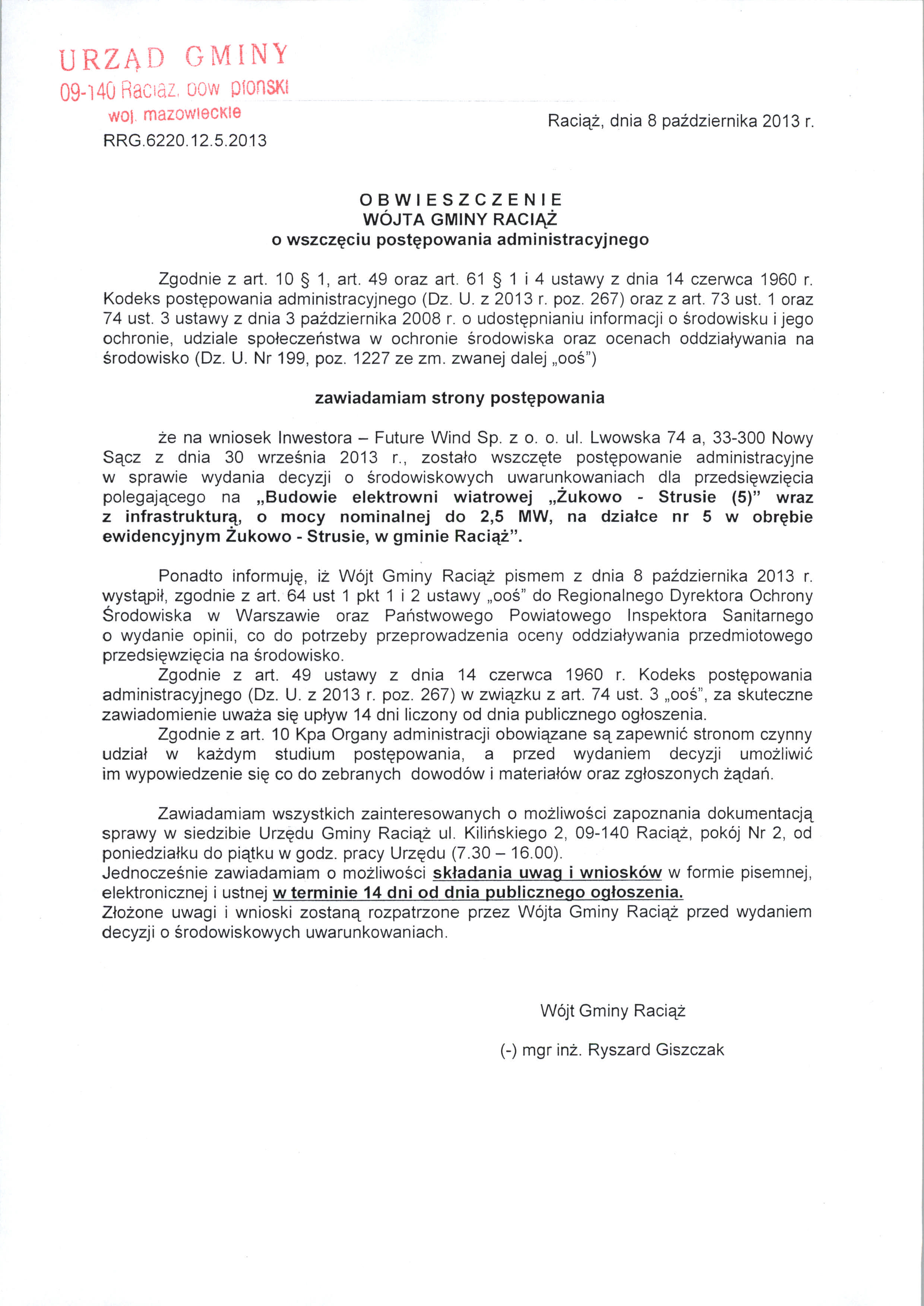 Obwieszczenie Wójta Gminy Raciąż - Obwieszczenia - Bip Gmina Raciąż