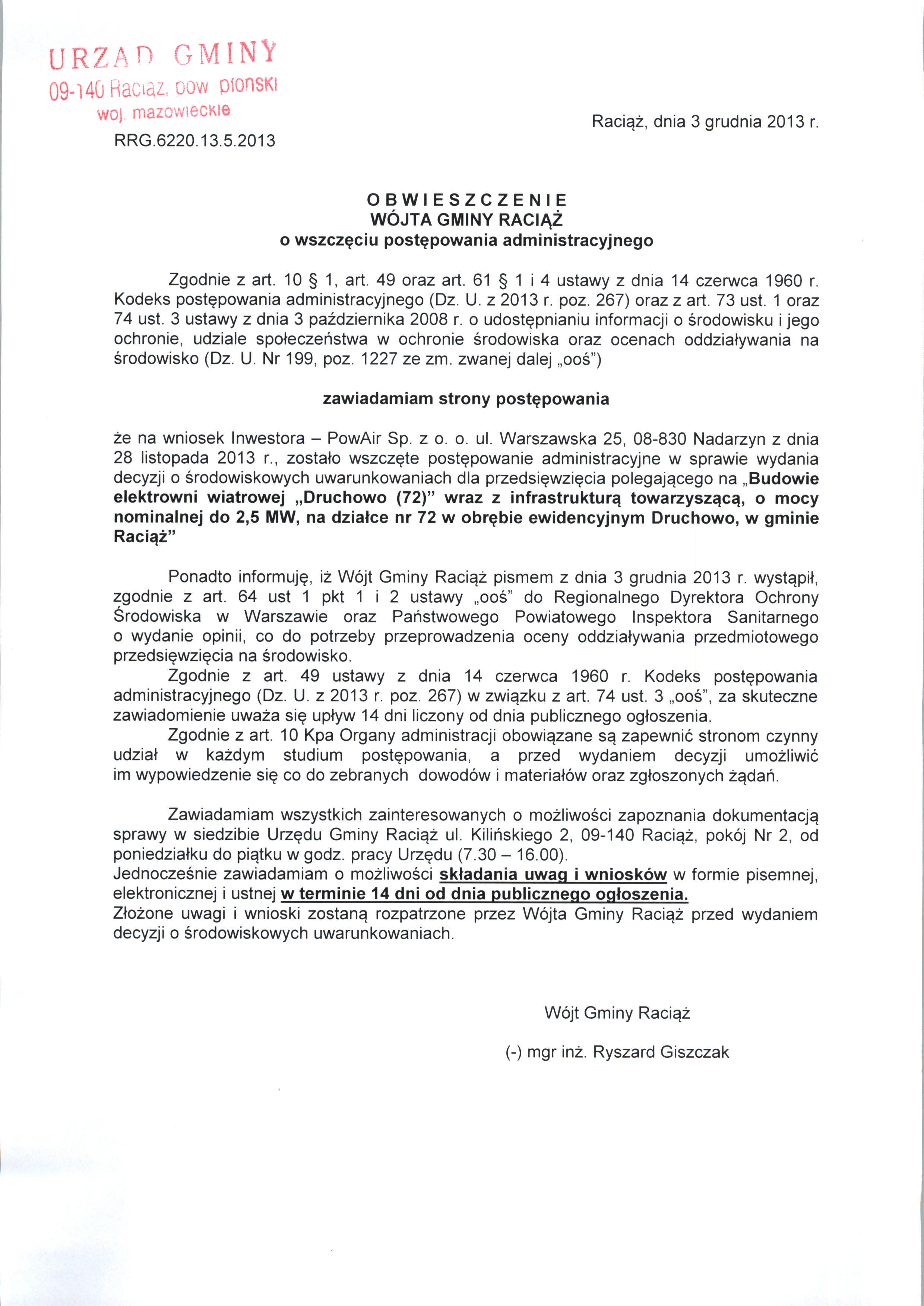 Obwieszczenie Wójta Gminy Raciąż - Obwieszczenia - Bip Gmina Raciąż