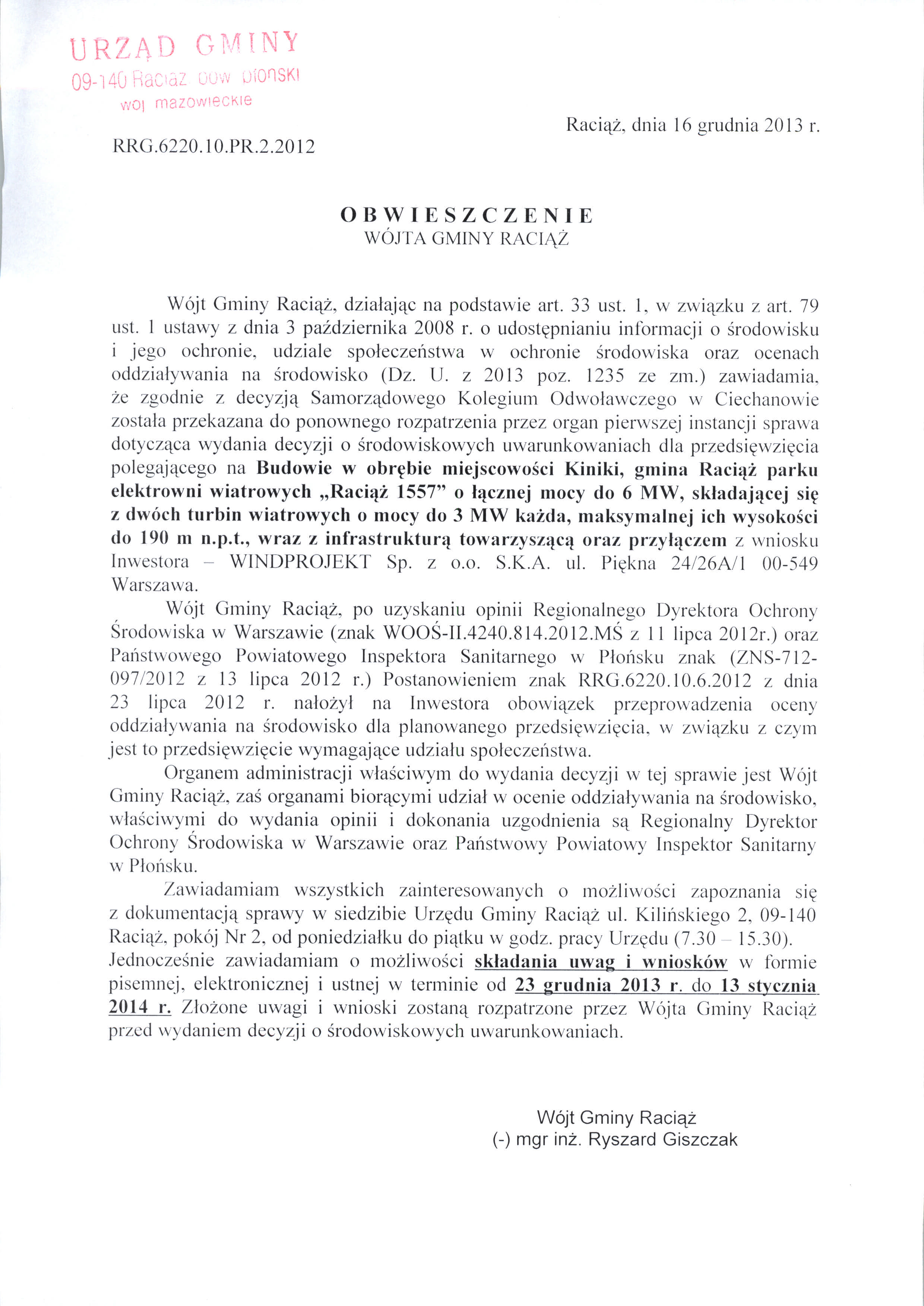 Obwieszczenie Wójta Gminy Raciąż - Obwieszczenia - Bip Gmina Raciąż