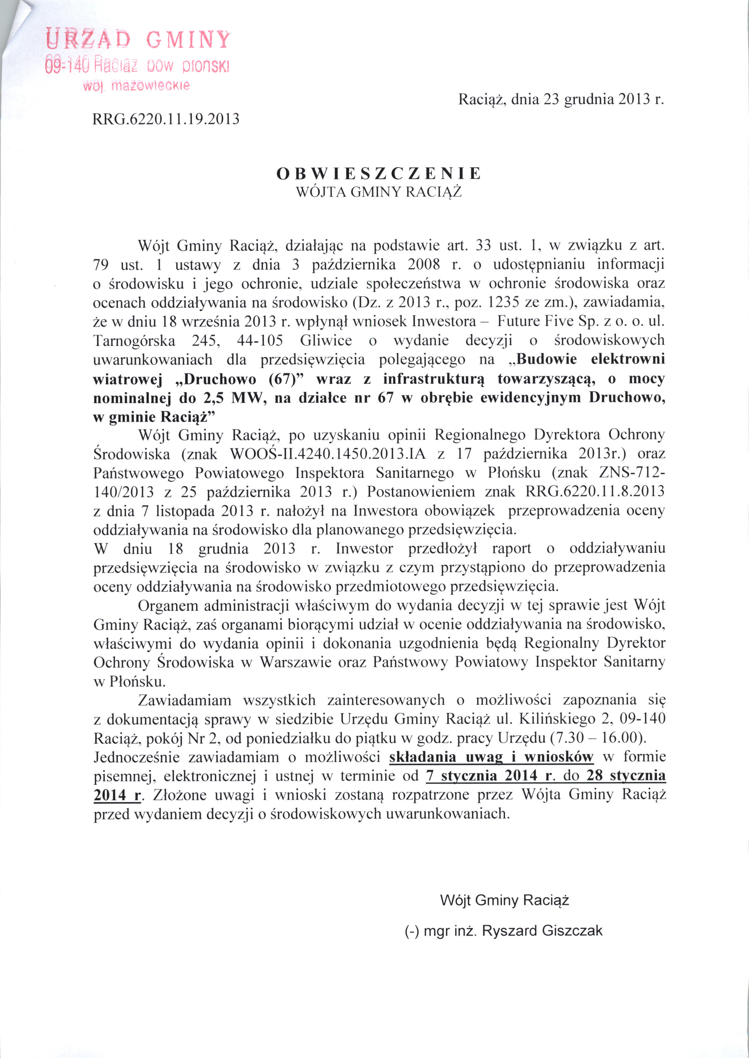 Obwieszczenie Wójta Gminy Raciąż - Obwieszczenia - Bip Gmina Raciąż