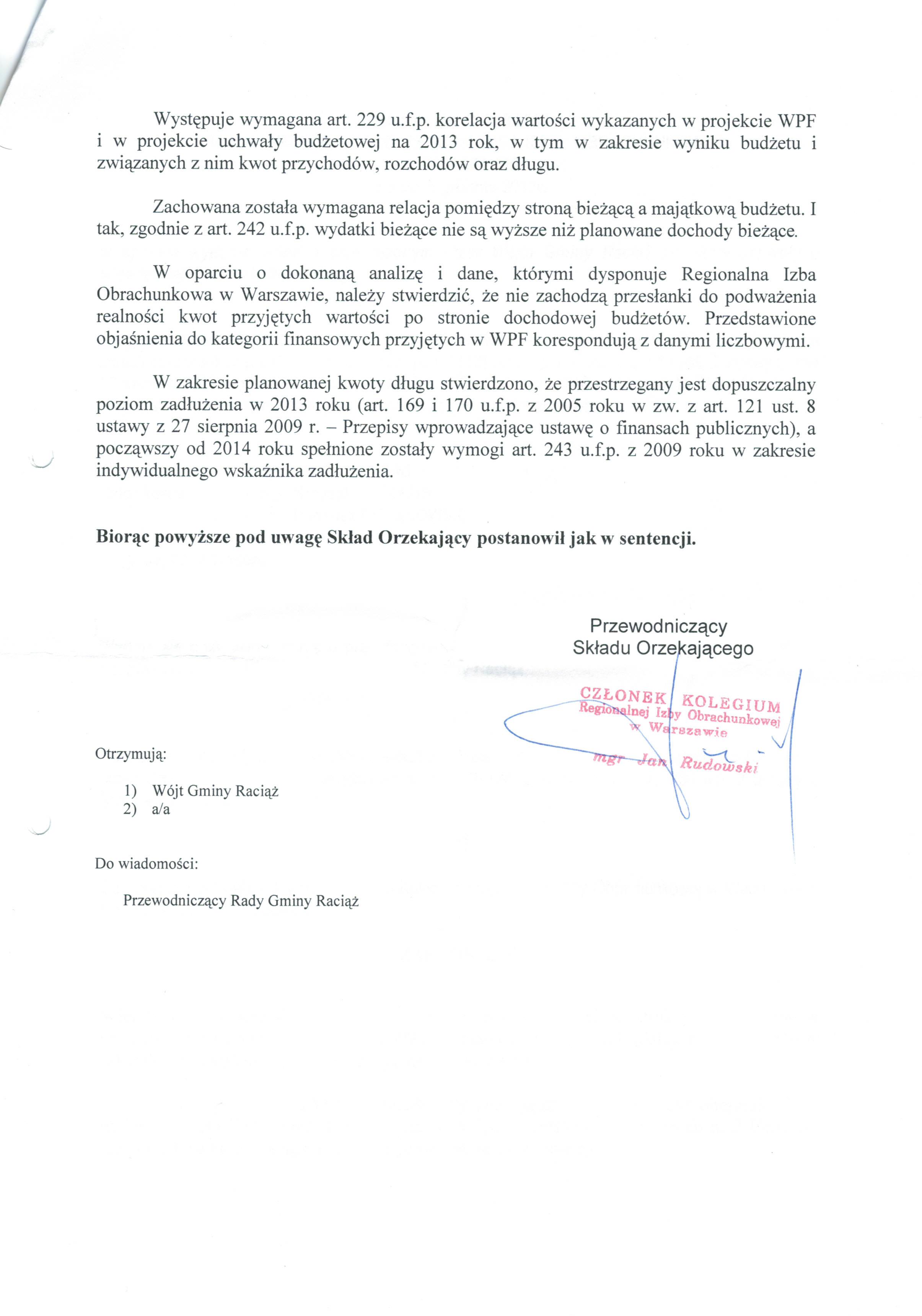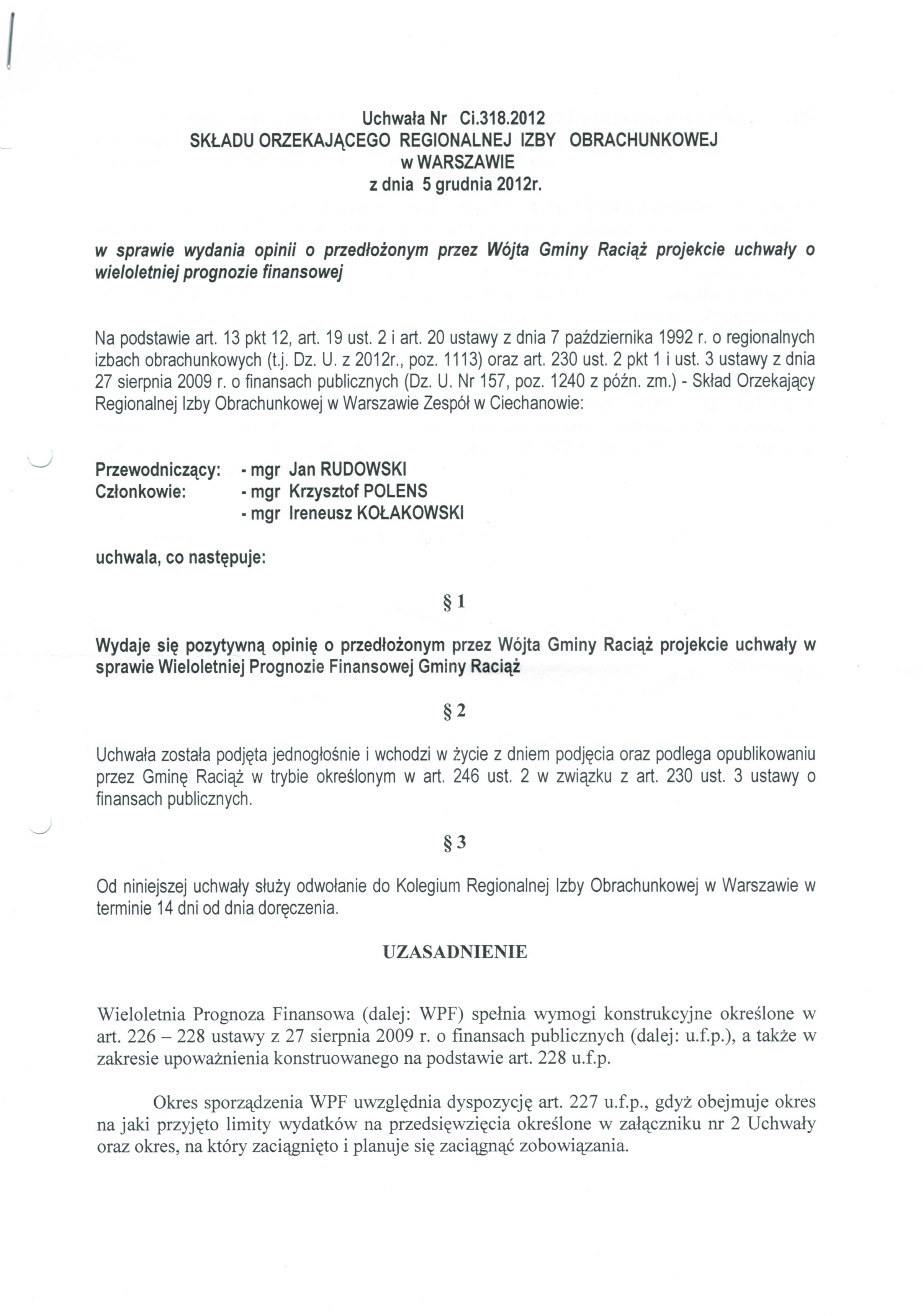 Uchwała Nr Ci.318.2012 Składu Orzekającego RIO w Warszawie z dn. 5.12.2012r. - Uchwały 2012 - Bip Gmina Raciąż