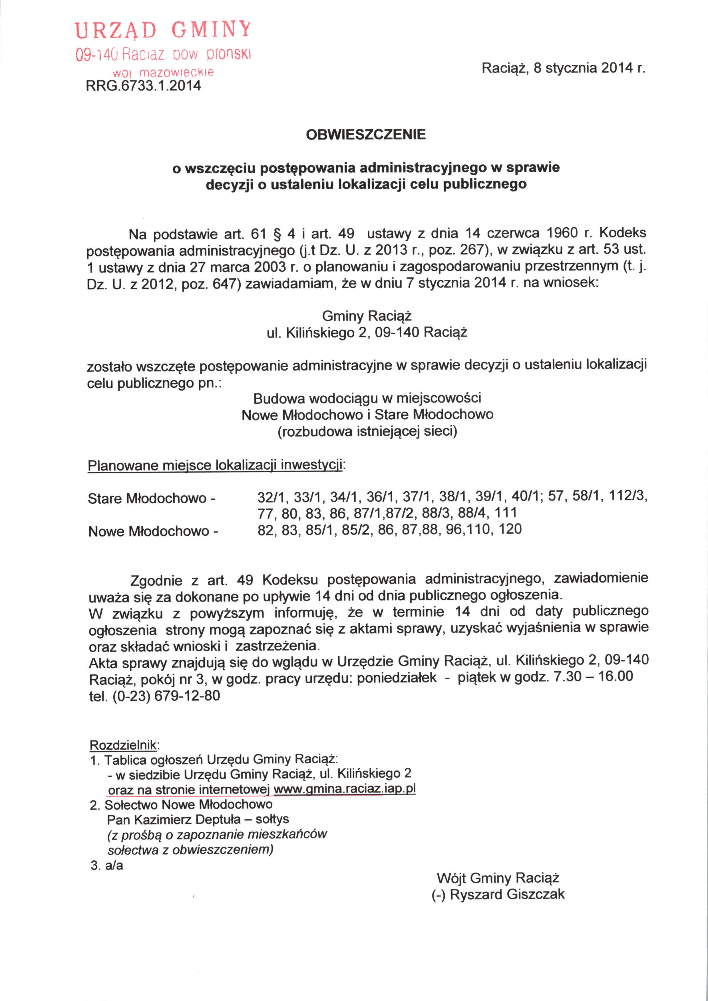 Obwieszczenie Wójta Gminy Raciąż - Obwieszczenia 2014 - Bip Gmina Raciąż