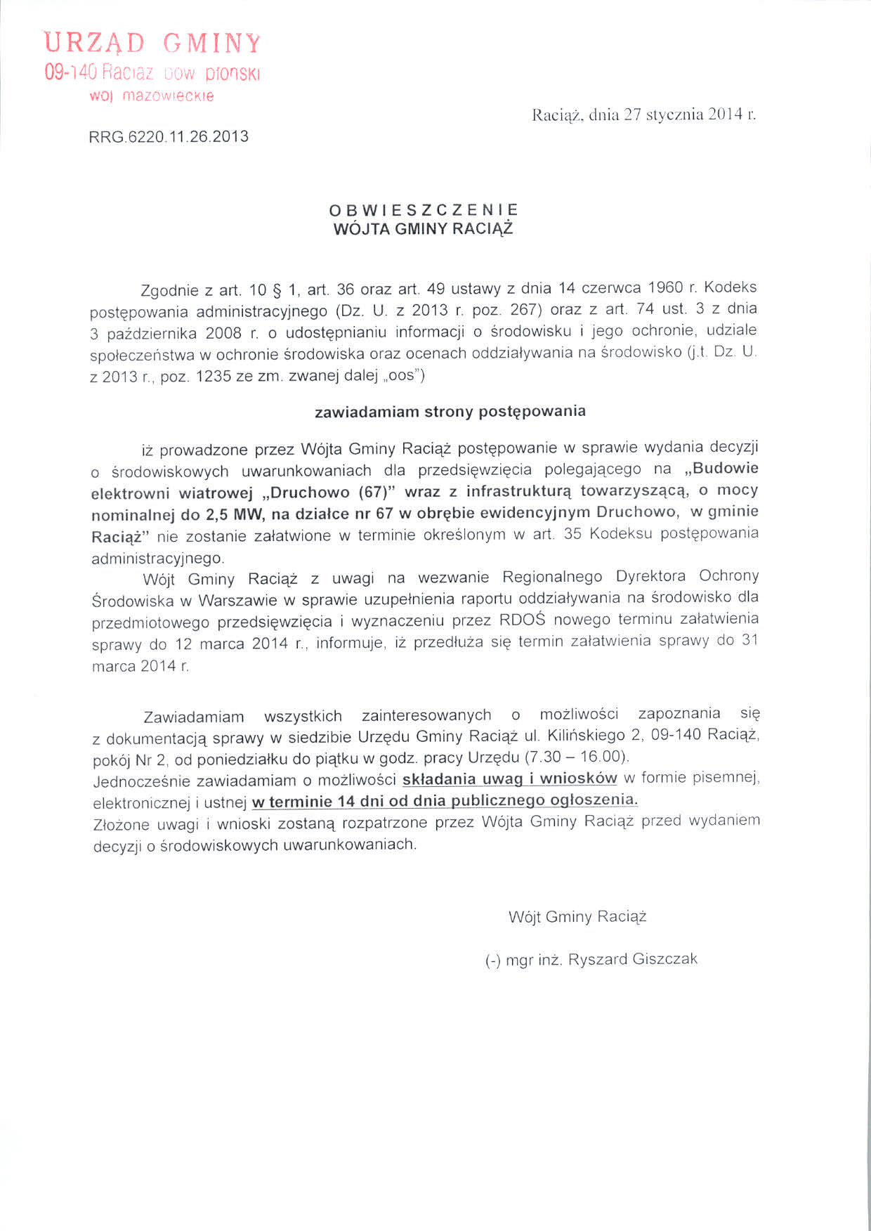 Obwieszczenie Wójta Gminy Raciąż - Obwieszczenia 2014 - Bip Gmina Raciąż