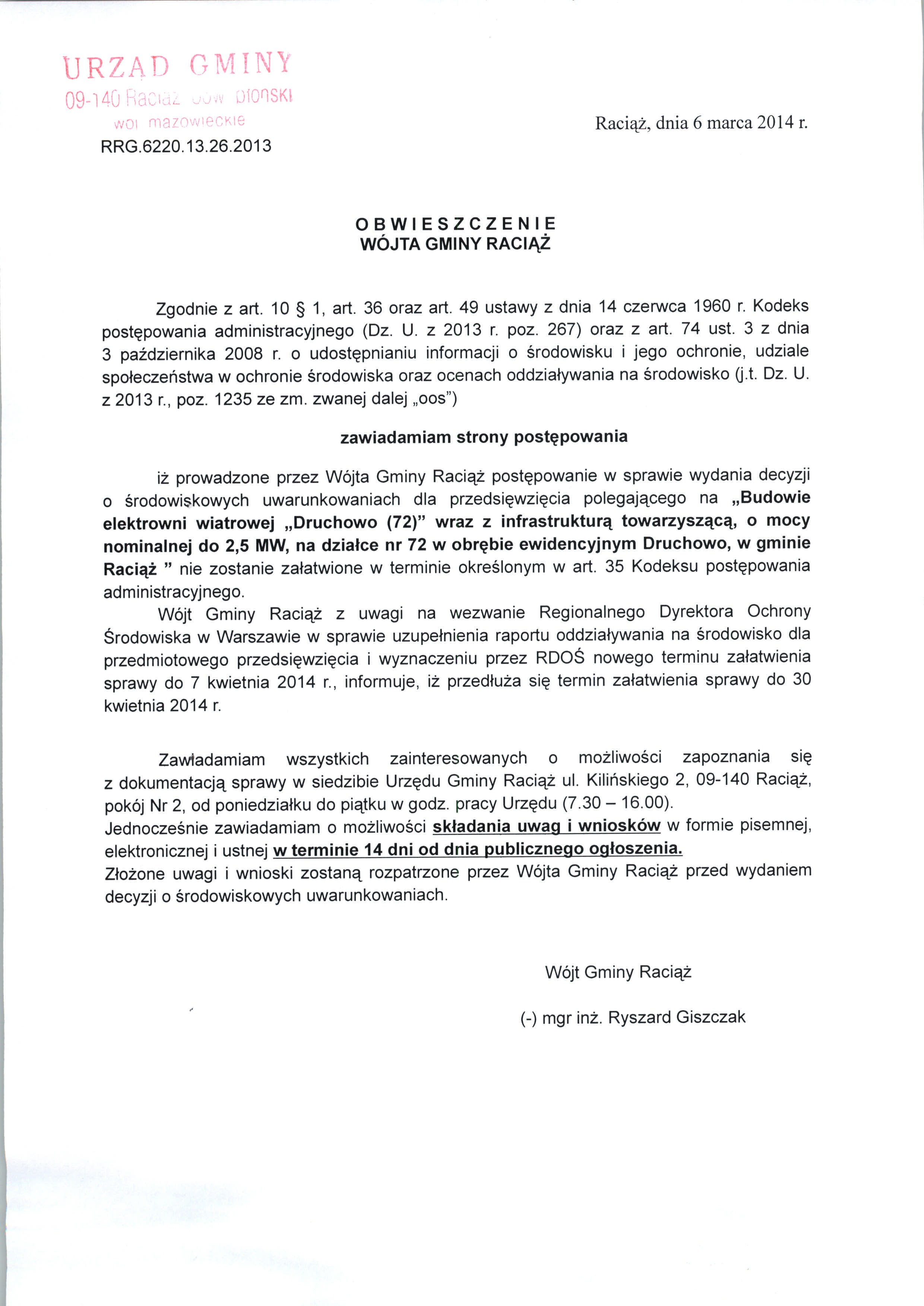 Obwieszczenie Wójta Gminy Raciąż - Obwieszczenia 2014 - Bip Gmina Raciąż
