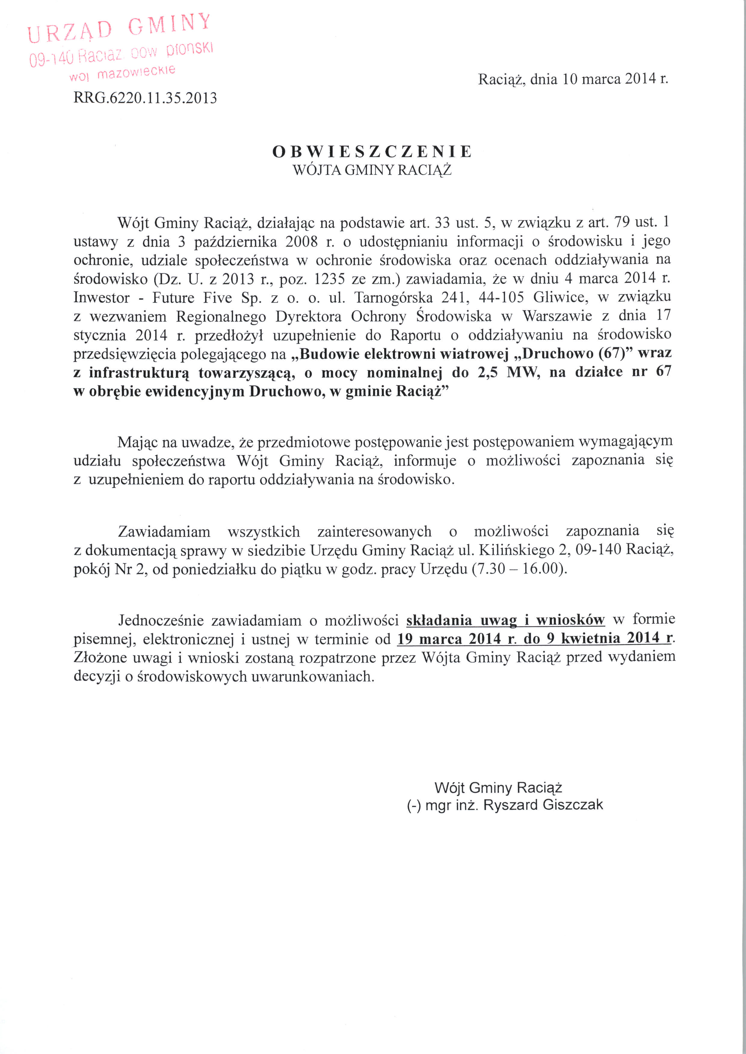 Obwieszczenie Wójta Gminy Raciąż - Obwieszczenia 2014 - Bip Gmina Raciąż