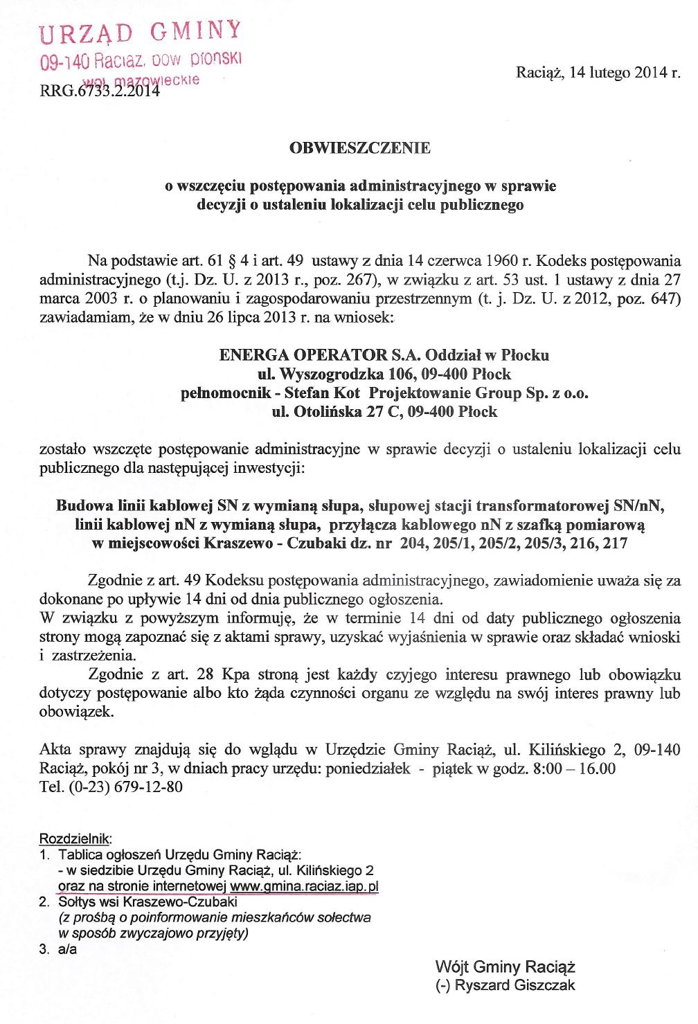 Obwieszczenie Wójta Gminy Raciąż - Obwieszczenia 2014 - Bip Gmina Raciąż
