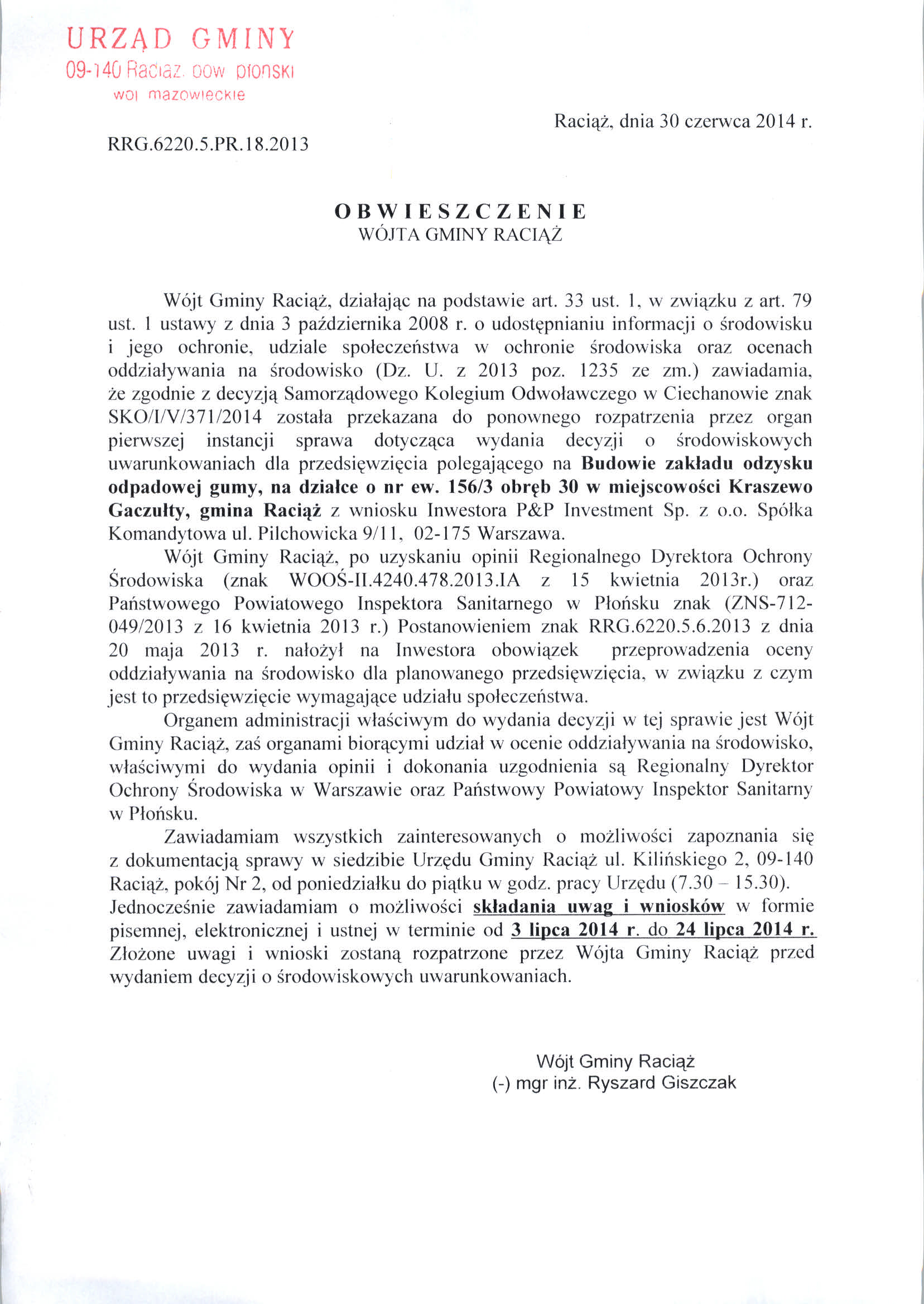 Obwieszczenie Wójta Gminy Raciąż - Obwieszczenia 2014 - Bip Gmina Raciąż