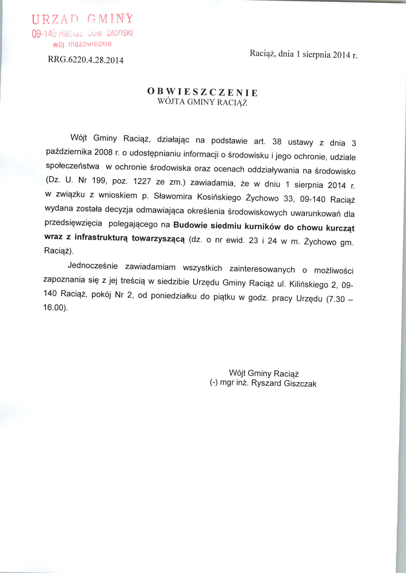 Obwieszczenie Wójta Gminy Raciąż - Obwieszczenia 2014 - Bip Gmina Raciąż