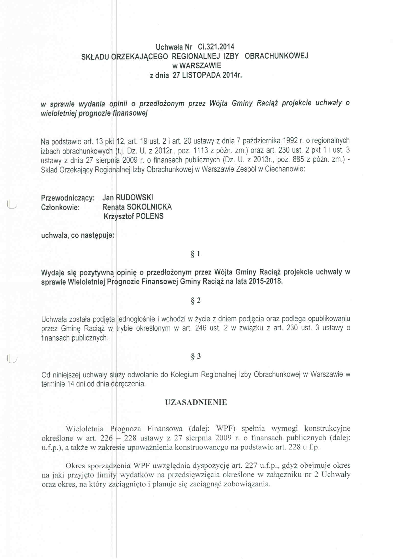 Uchwała Nr Ci.321.2014 Składu Orzekającego Regionalnej Izby Obrachunkowej w Warszawie