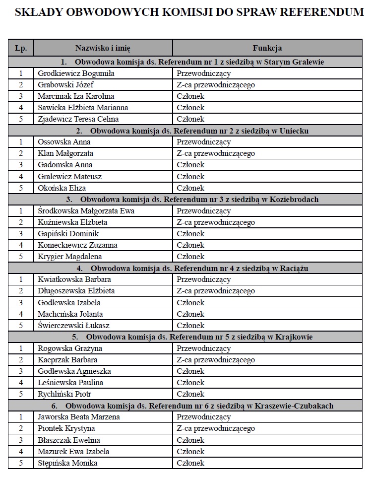 Składy Obwodowych Komisji do spraw Referendum - Referendum Ogólnokrajowe 2015 - Bip Gmina Raciąż