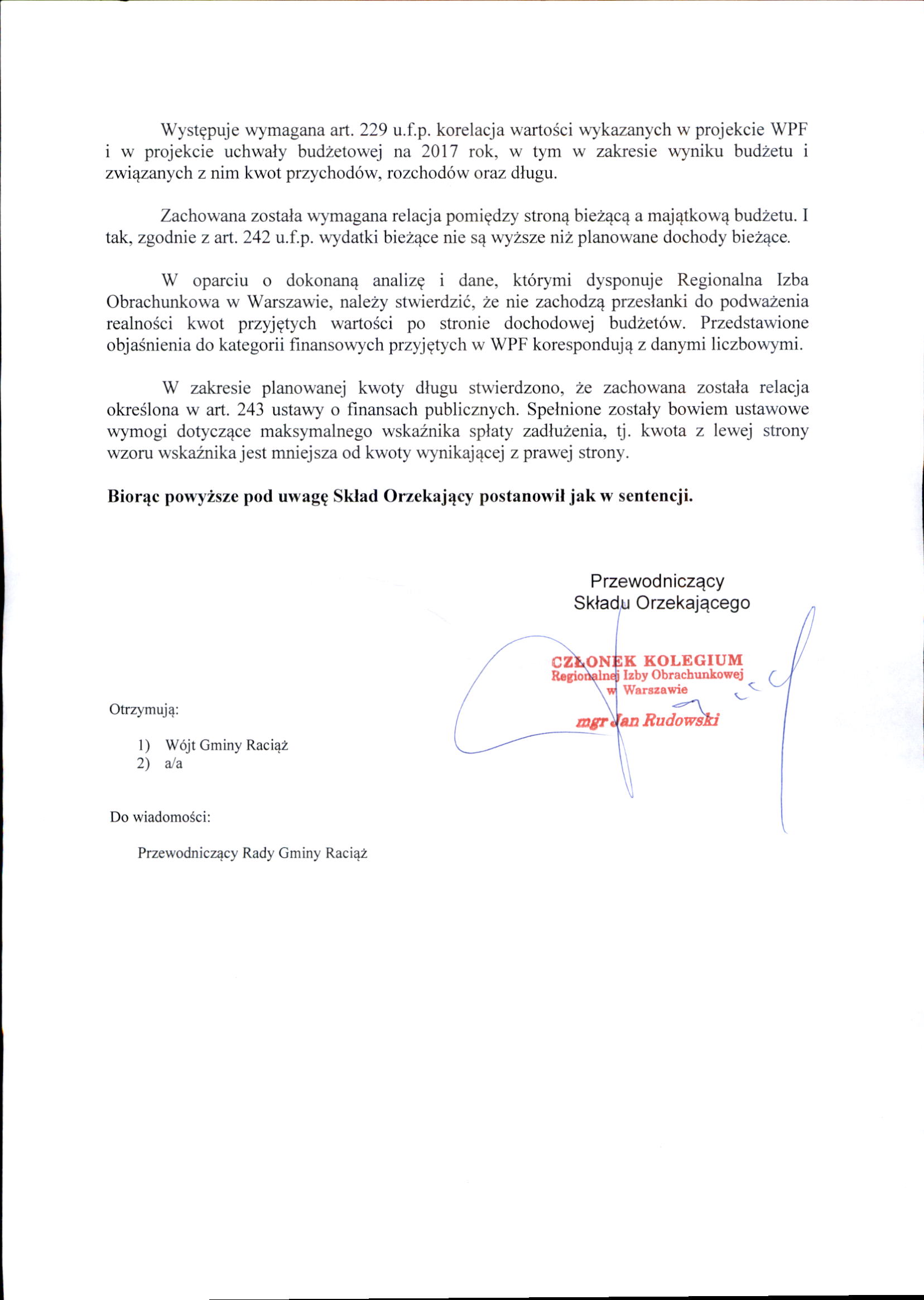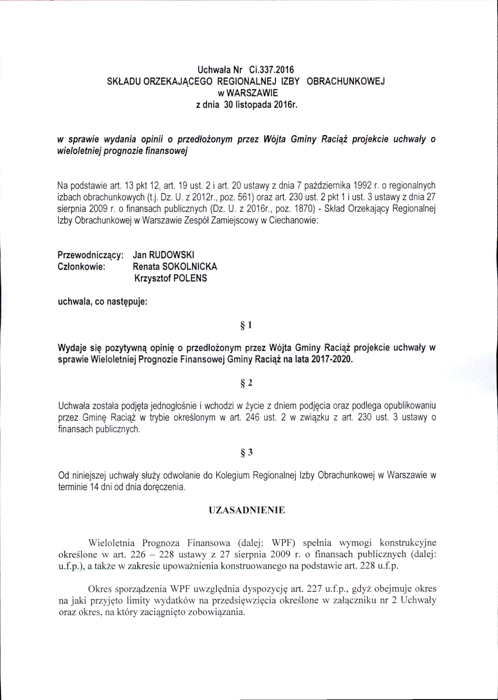 Uchwała Nr Ci.337.2016 Składu Orzekającego Regionalnej Izby Obrachunkowej w Warszawie - Uchwały 2016 - Bip Gmina Raciąż