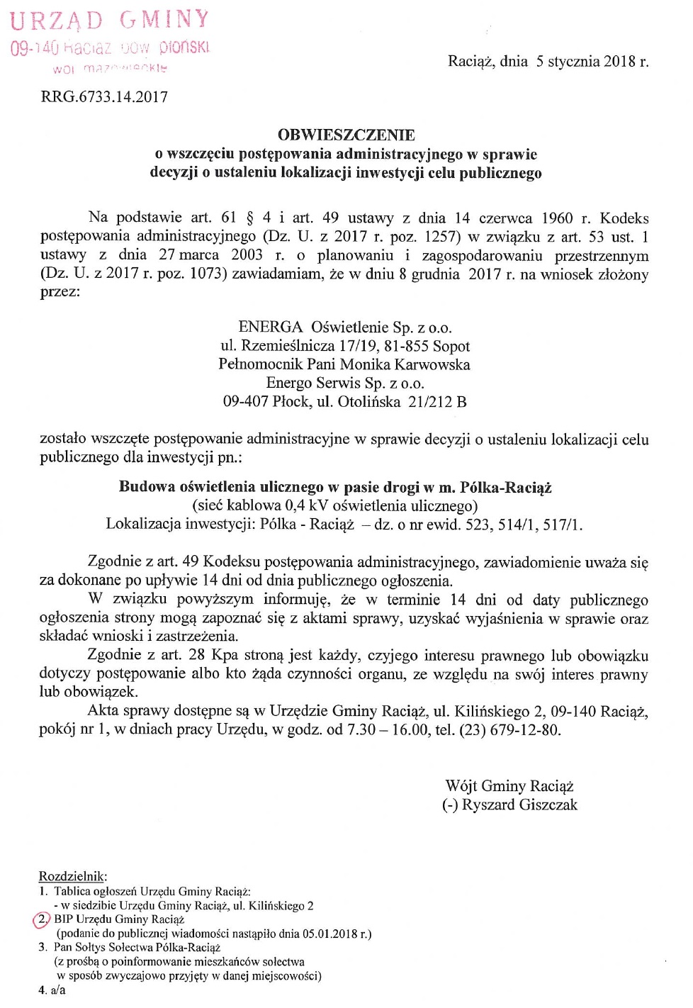 Obwieszczenie - Obwieszczenia 2018 - Bip Gmina Raciąż