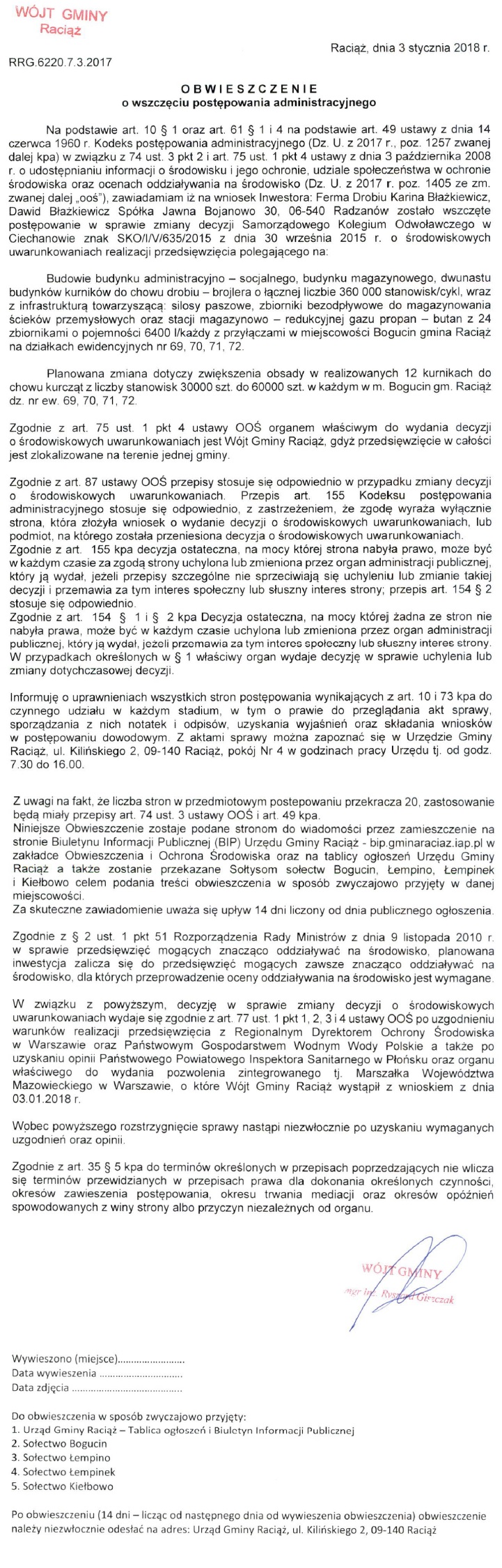 Obwieszczenie o wszczęciu postępowania administracyjnego - Obwieszczenia 2018 - Bip Gmina Raciąż