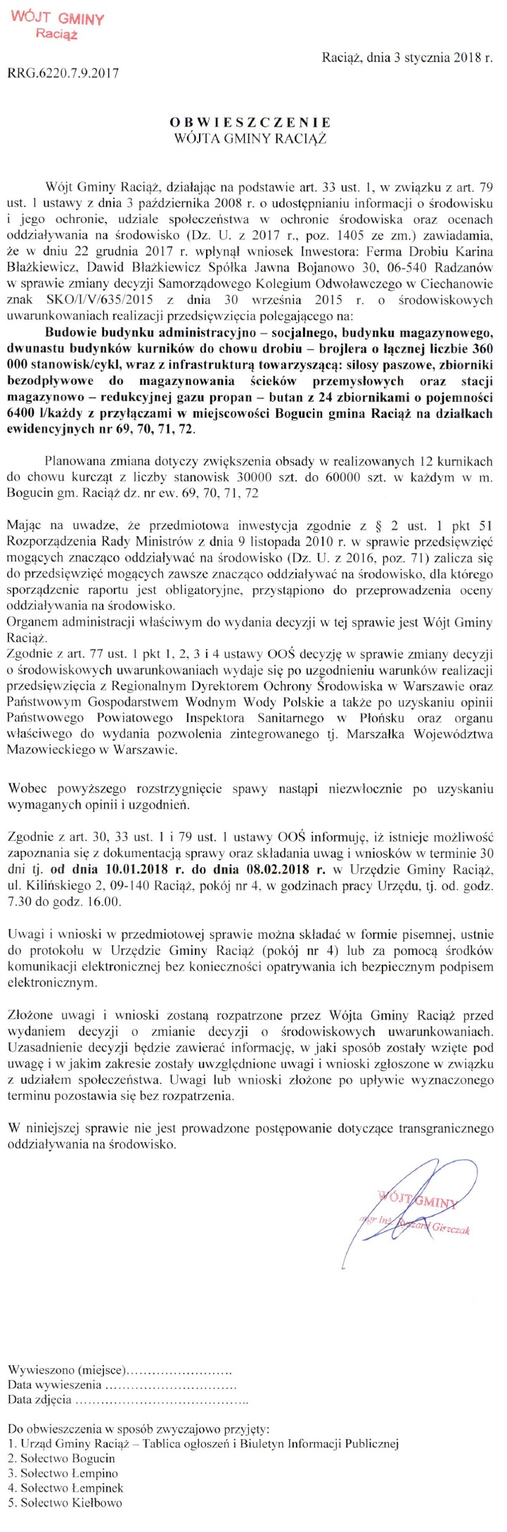 Obwieszczenie Wójta Gminy Raciąż - Obwieszczenia 2018 - Bip Gmina Raciąż