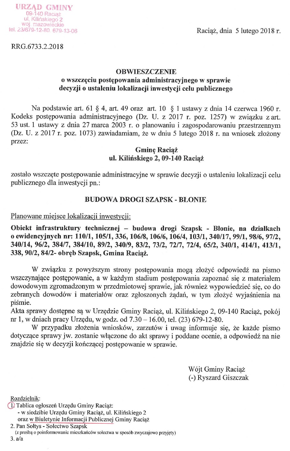 Obwieszczenie - Obwieszczenia 2018 - Bip Gmina Raciąż