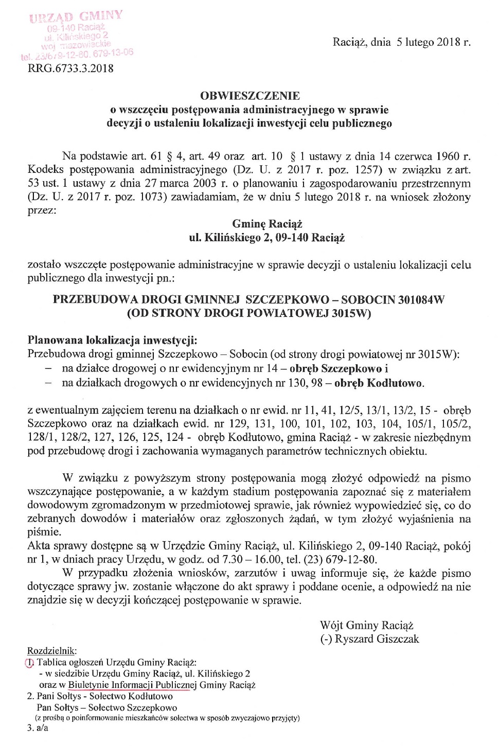 Obwieszczenie - Obwieszczenia 2018 - Bip Gmina Raciąż