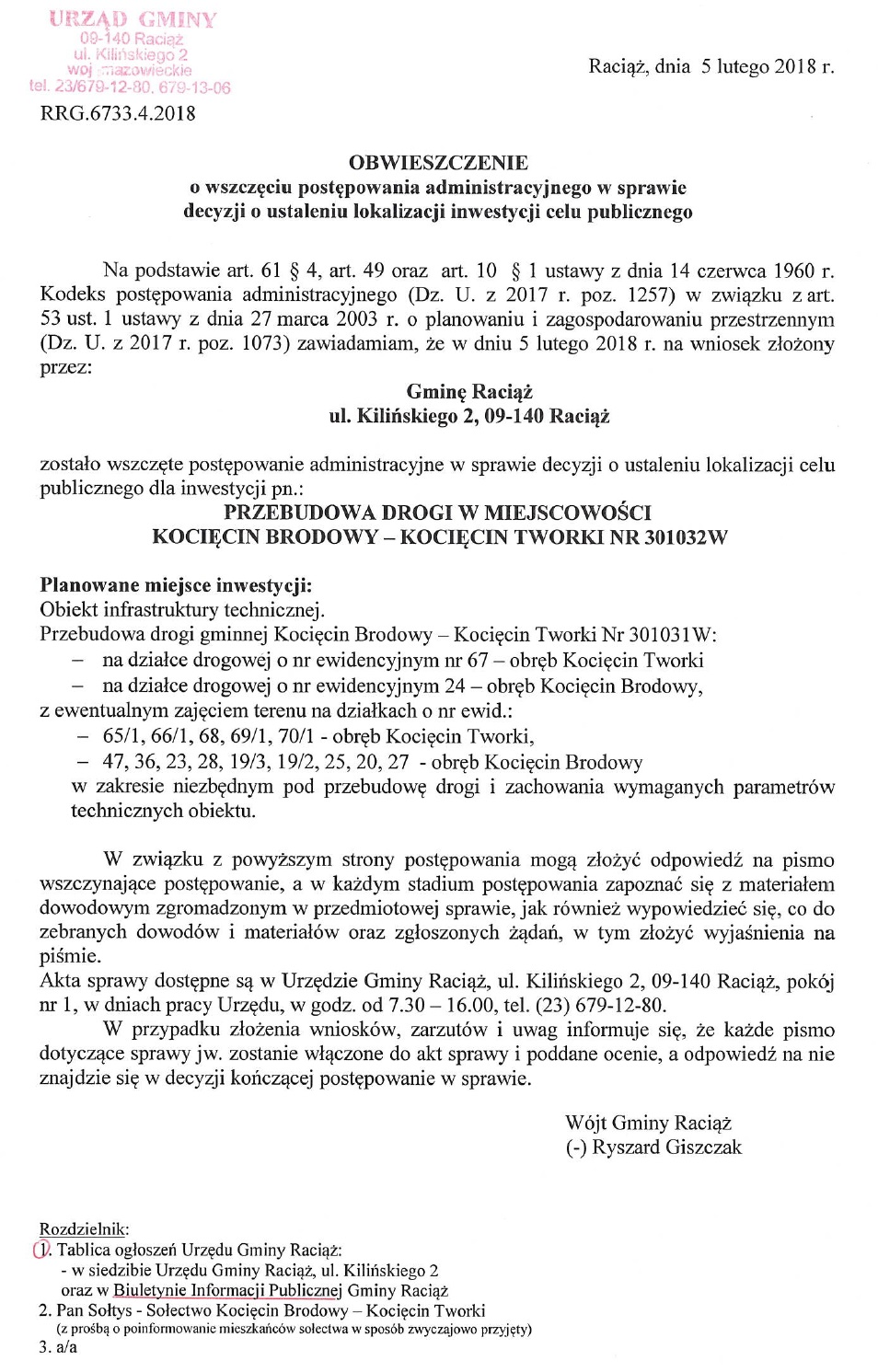 Obwieszczenie - Obwieszczenia 2018 - Bip Gmina Raciąż