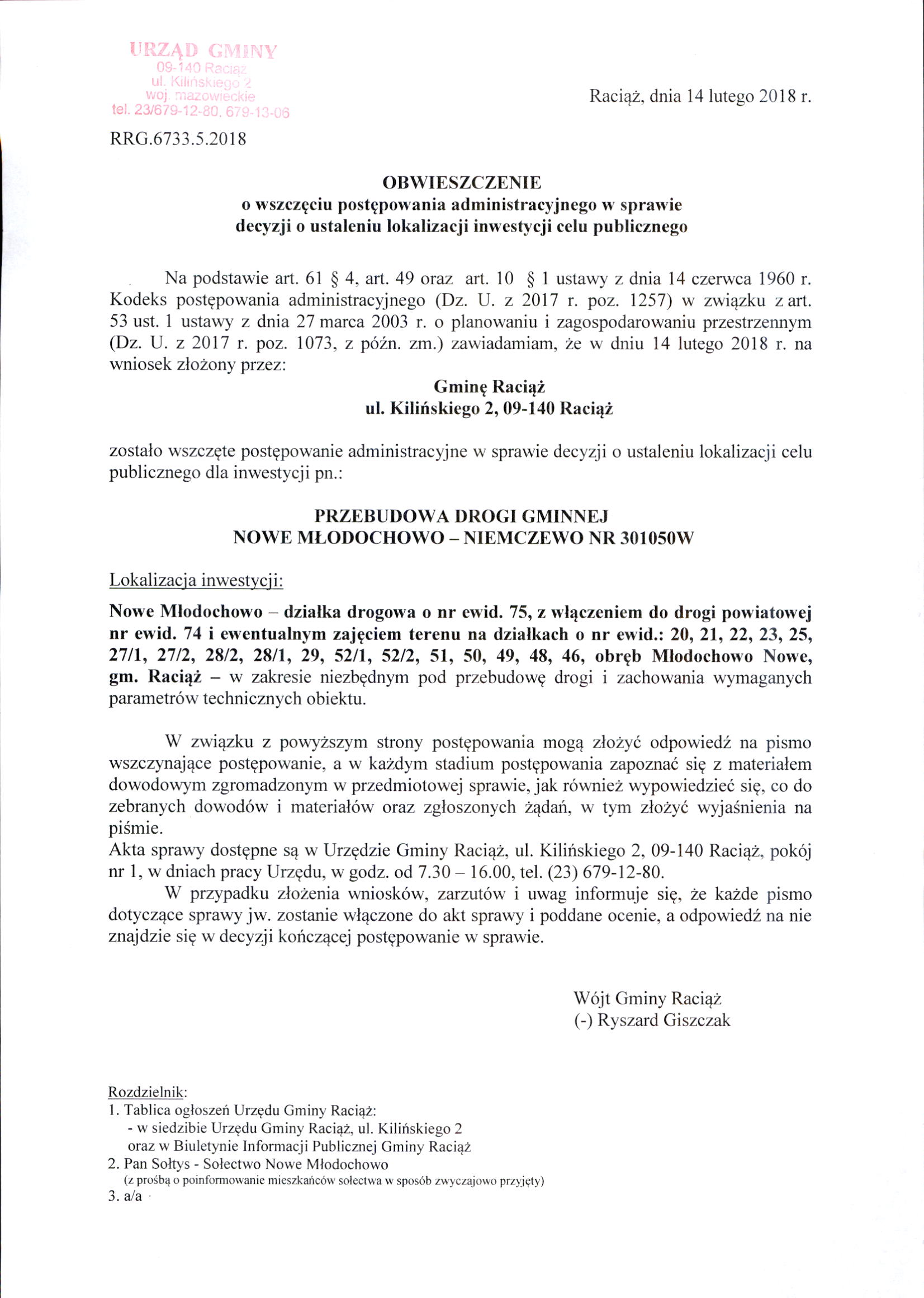 Obwieszczenie - Obwieszczenia 2018 - Bip Gmina Raciąż
