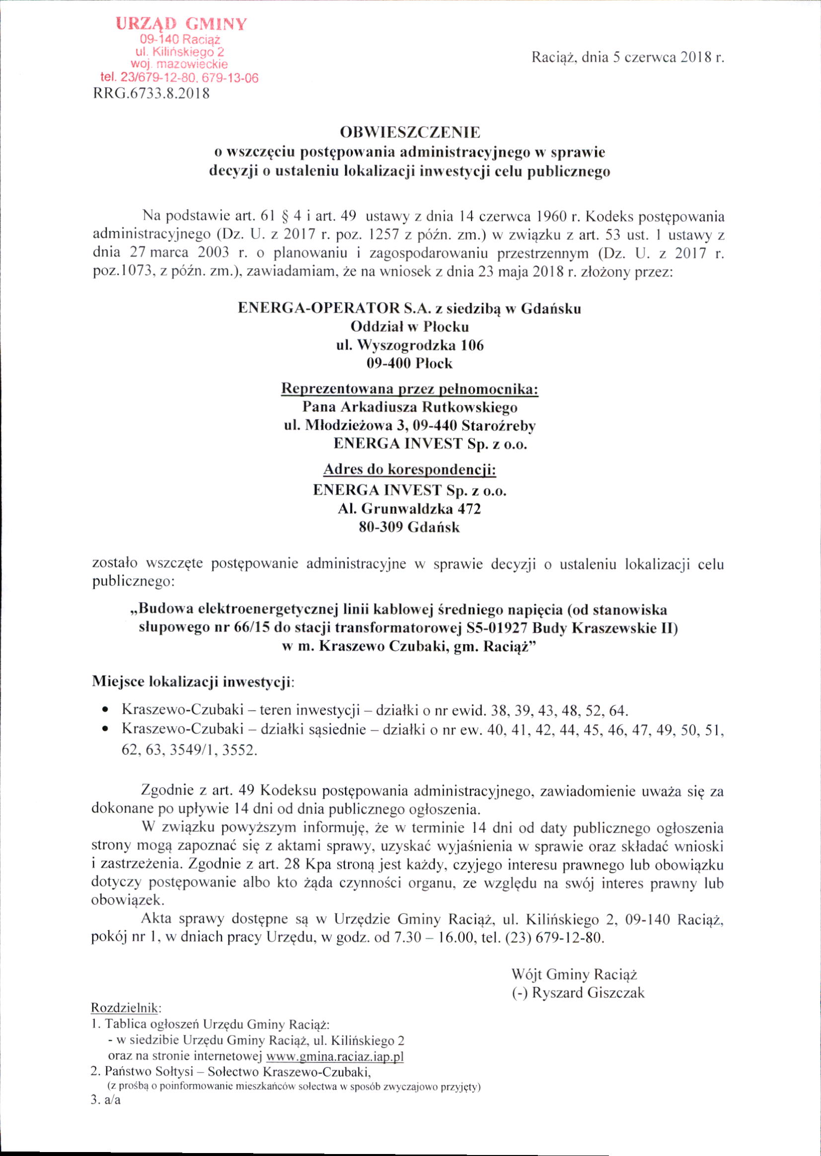 Obwieszczenie - Obwieszczenia 2018 - Bip Gmina Raciąż