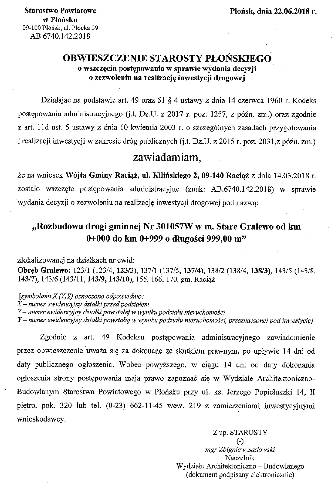 Obwieszczenie Starosty Płońskiego - Obwieszczenia 2018 - Bip Gmina Raciąż