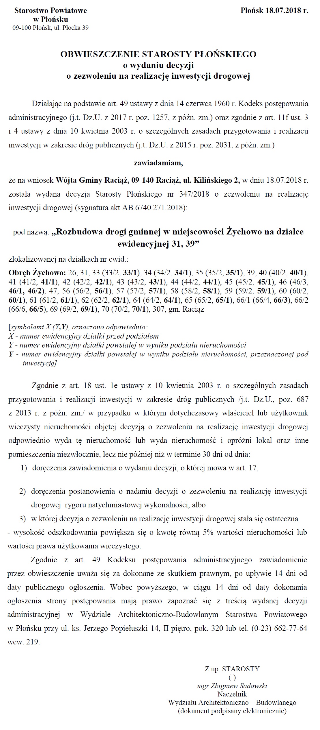 Obwieszczenie Starosty Płońskiego - Obwieszczenia 2018 - Bip Gmina Raciąż