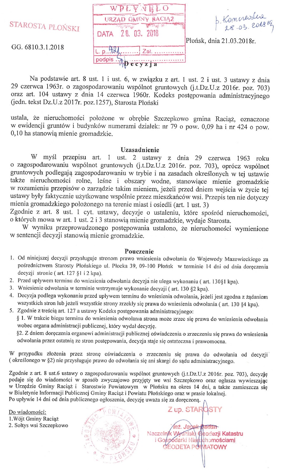 Decyzja Starosty Płońskiego - Ogłoszenia - Bip Gmina Raciąż