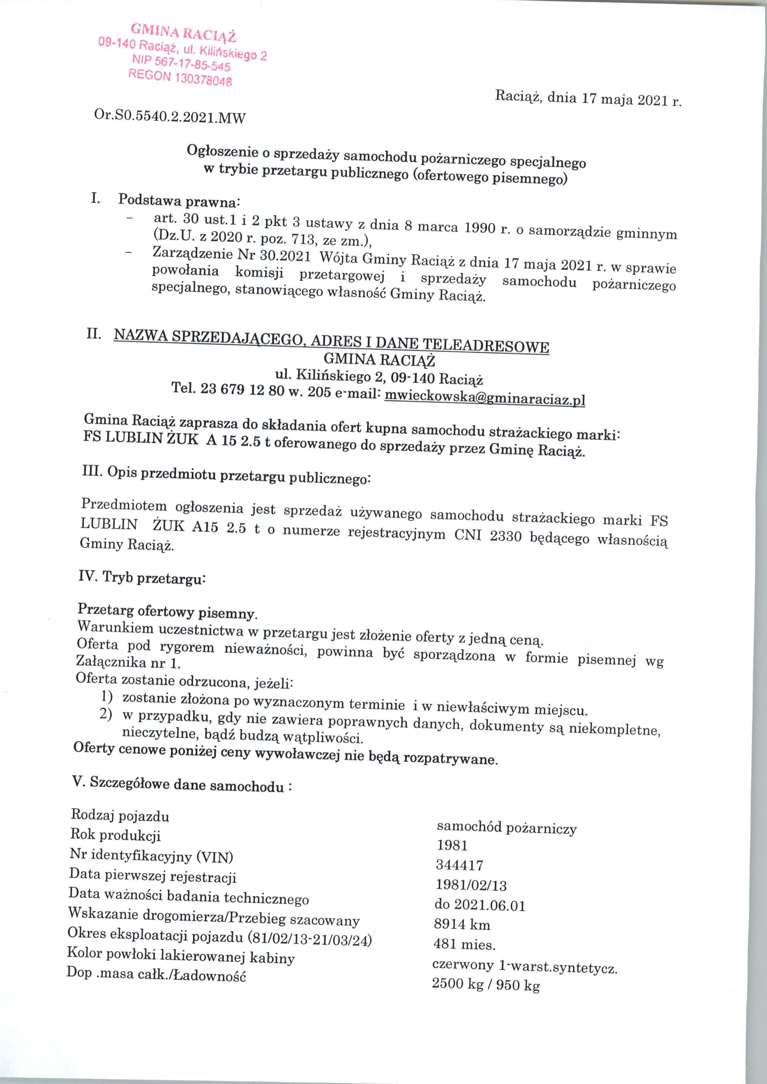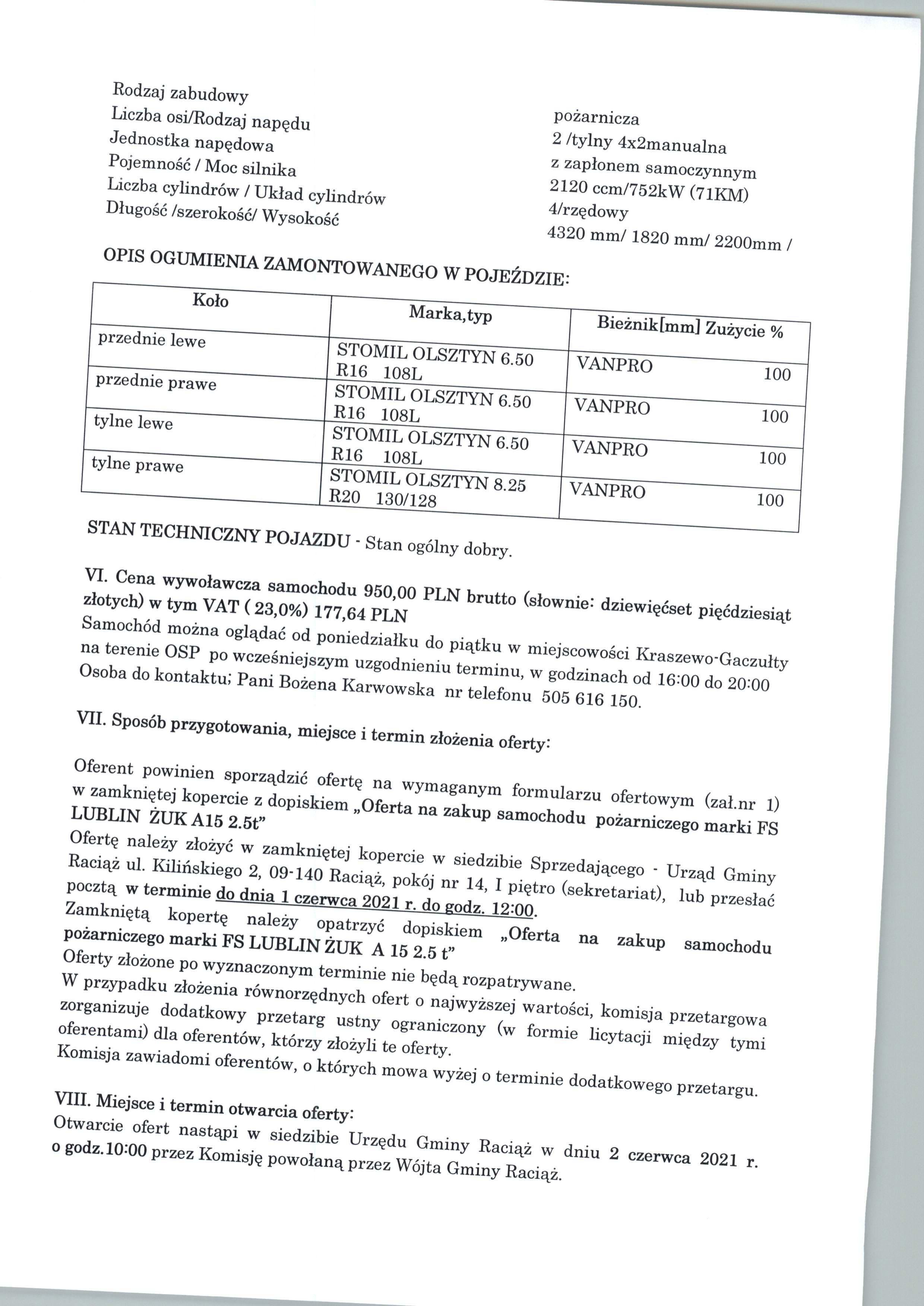 Ogłoszenie o sprzedaży samochodu pożarniczego specjalnego w trybie przetargu publicznego (ofertowego pisemnego)