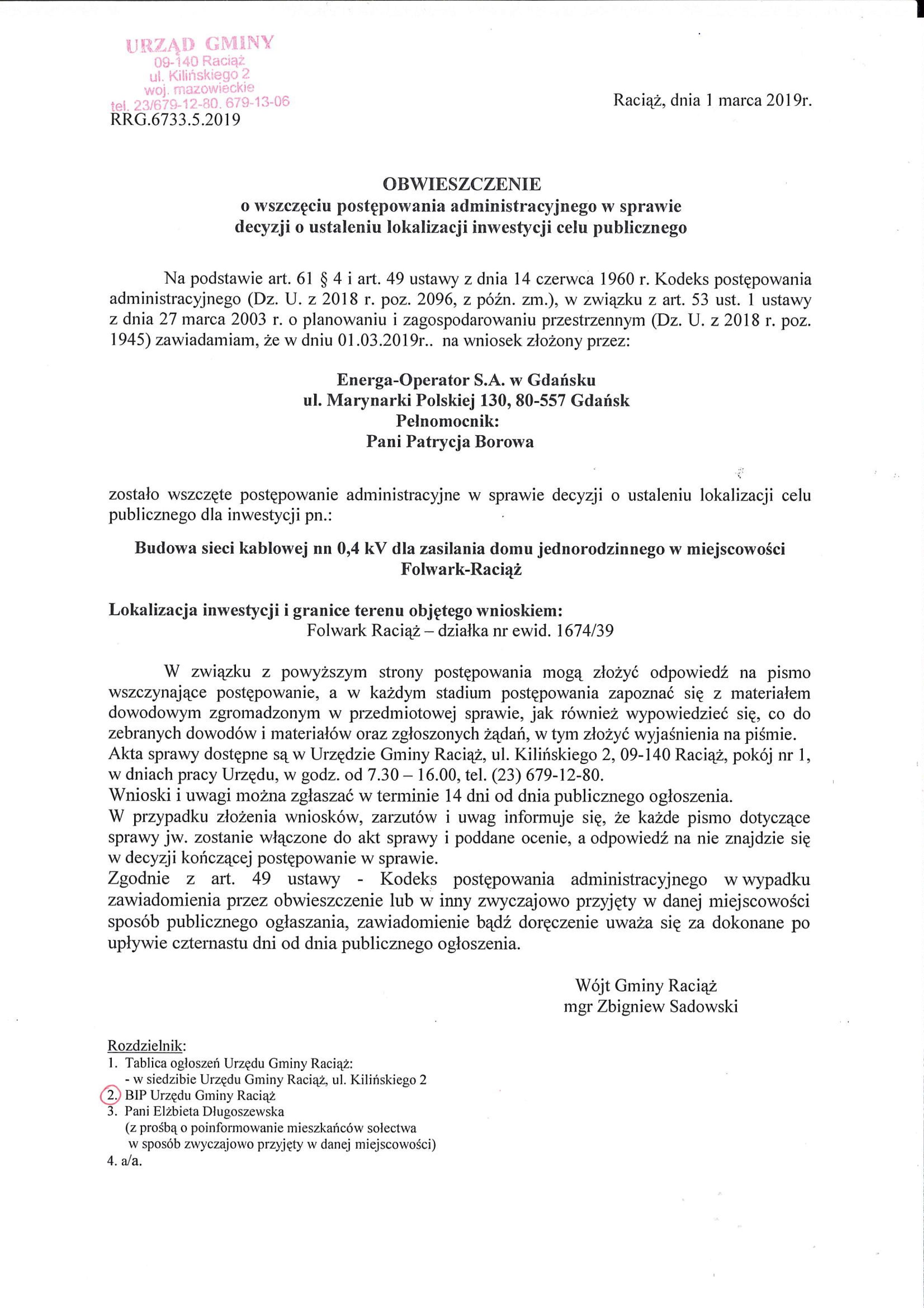 Budowa sieci kablowej nn 0,4kV w m. Folwark-Raciąż
