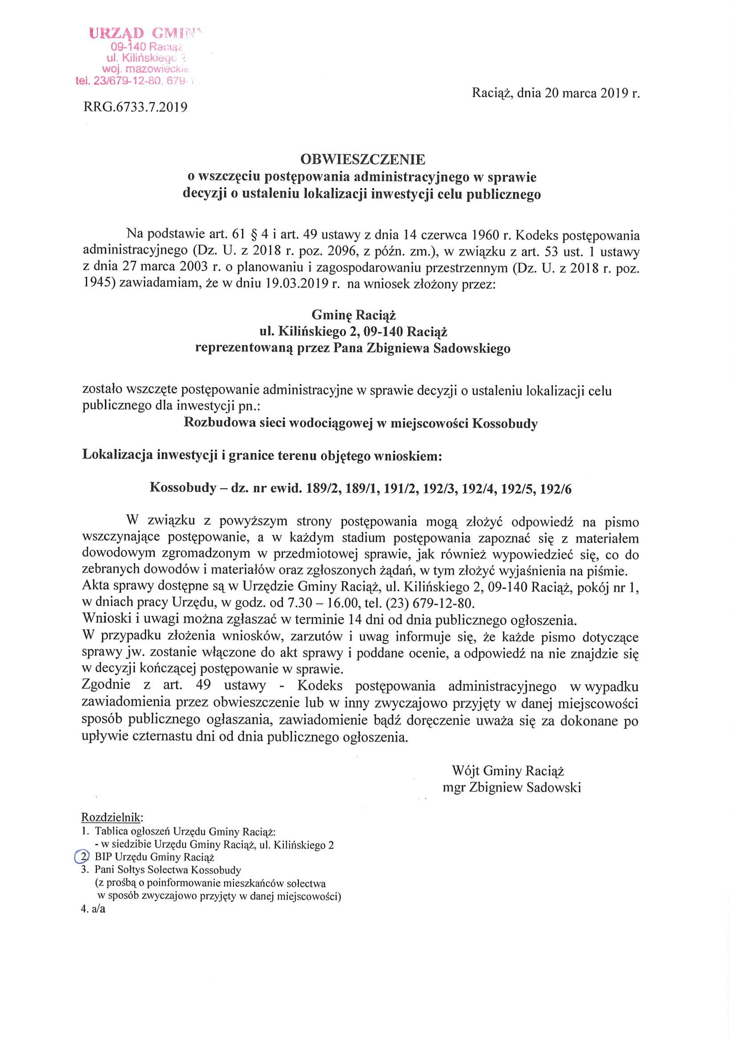 Rozbudowa sieci wodociągowej w m. Kossobudy