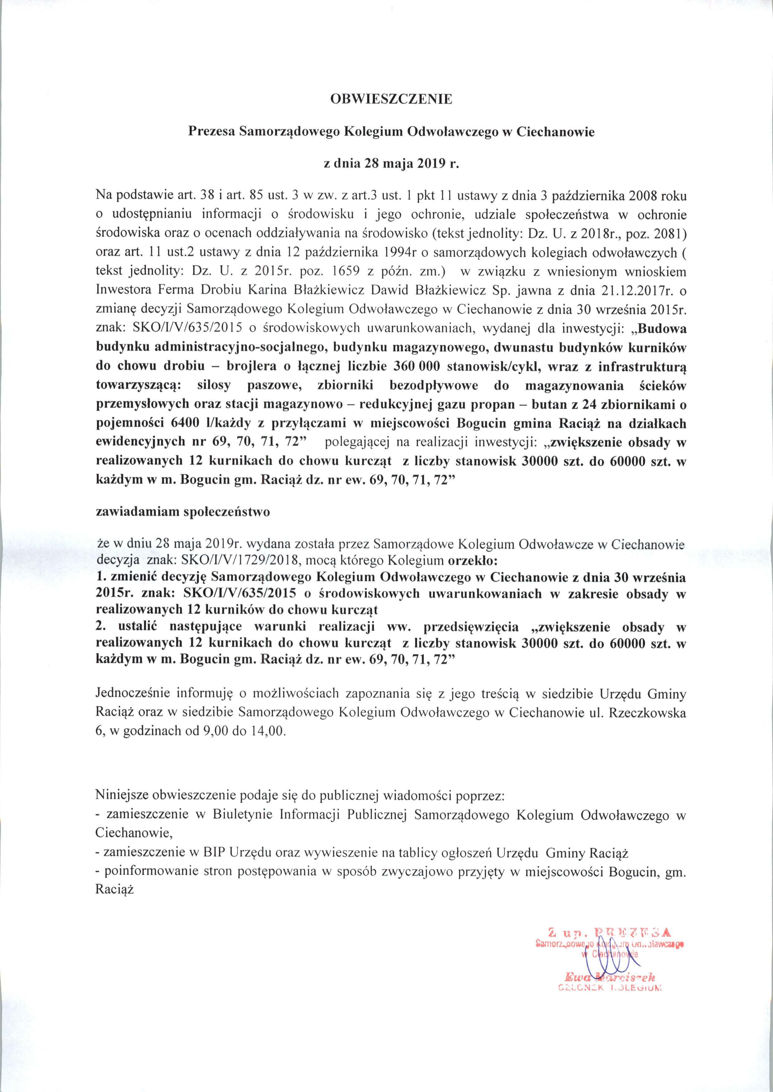 Obwieszczenie - Ferma drobiu w Bogucinie