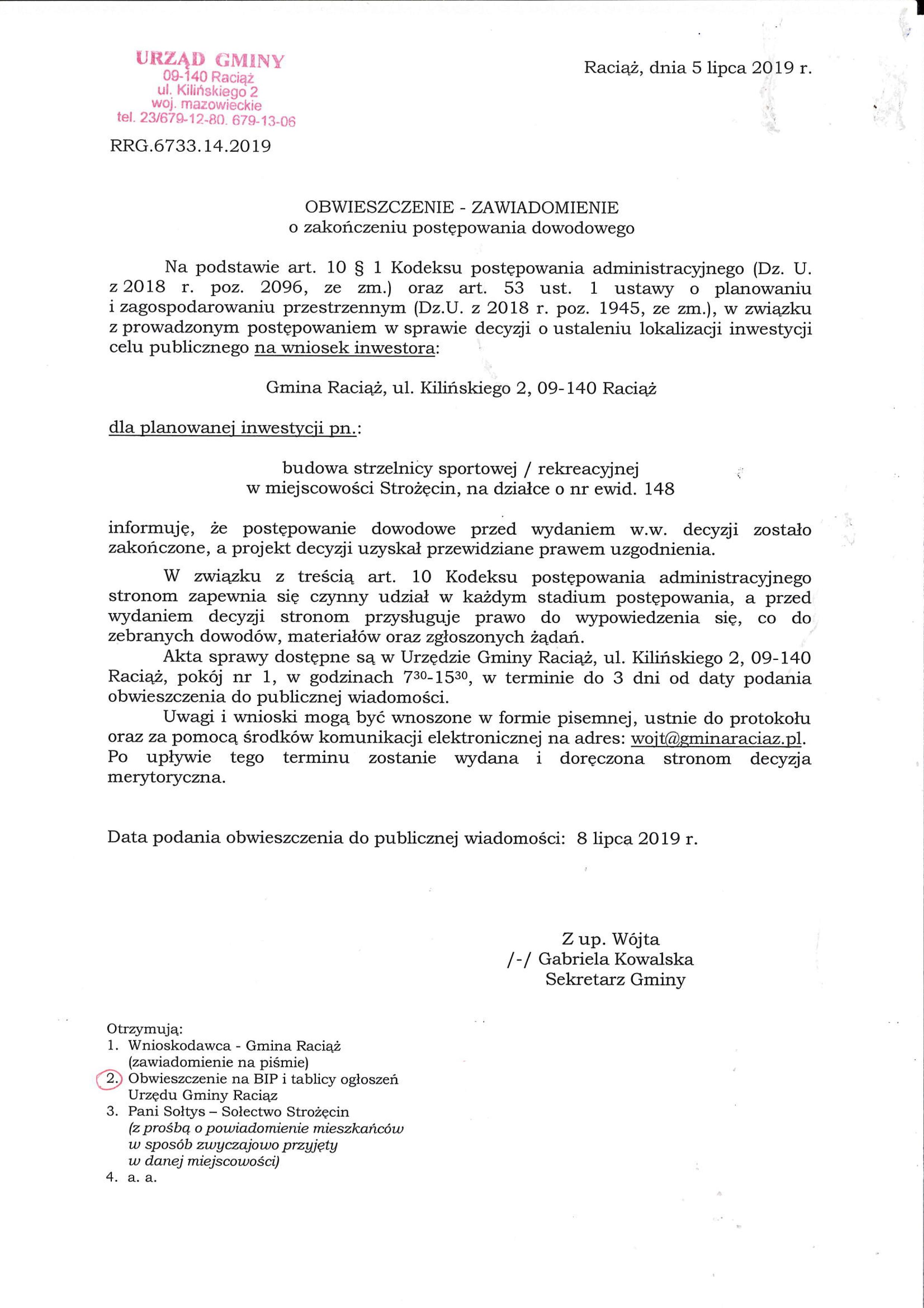 Zakończenie postępowania – budowa strzelnicy Strożęcin