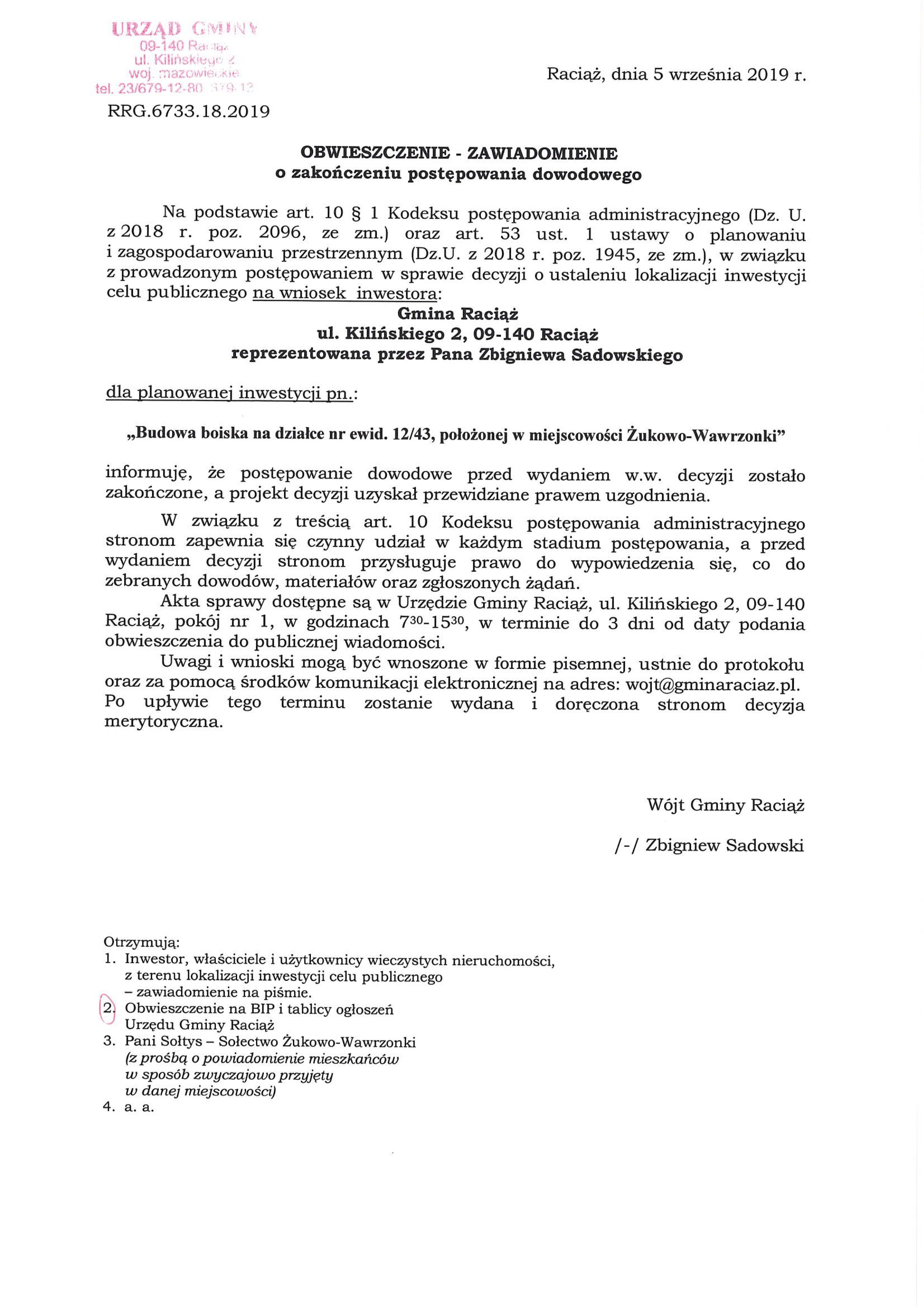 Cel publiczny – zakończenie postępowania “Budowa boiska na działce nr ewid. 12/43 w m. Żukowo-Wawrzonki
