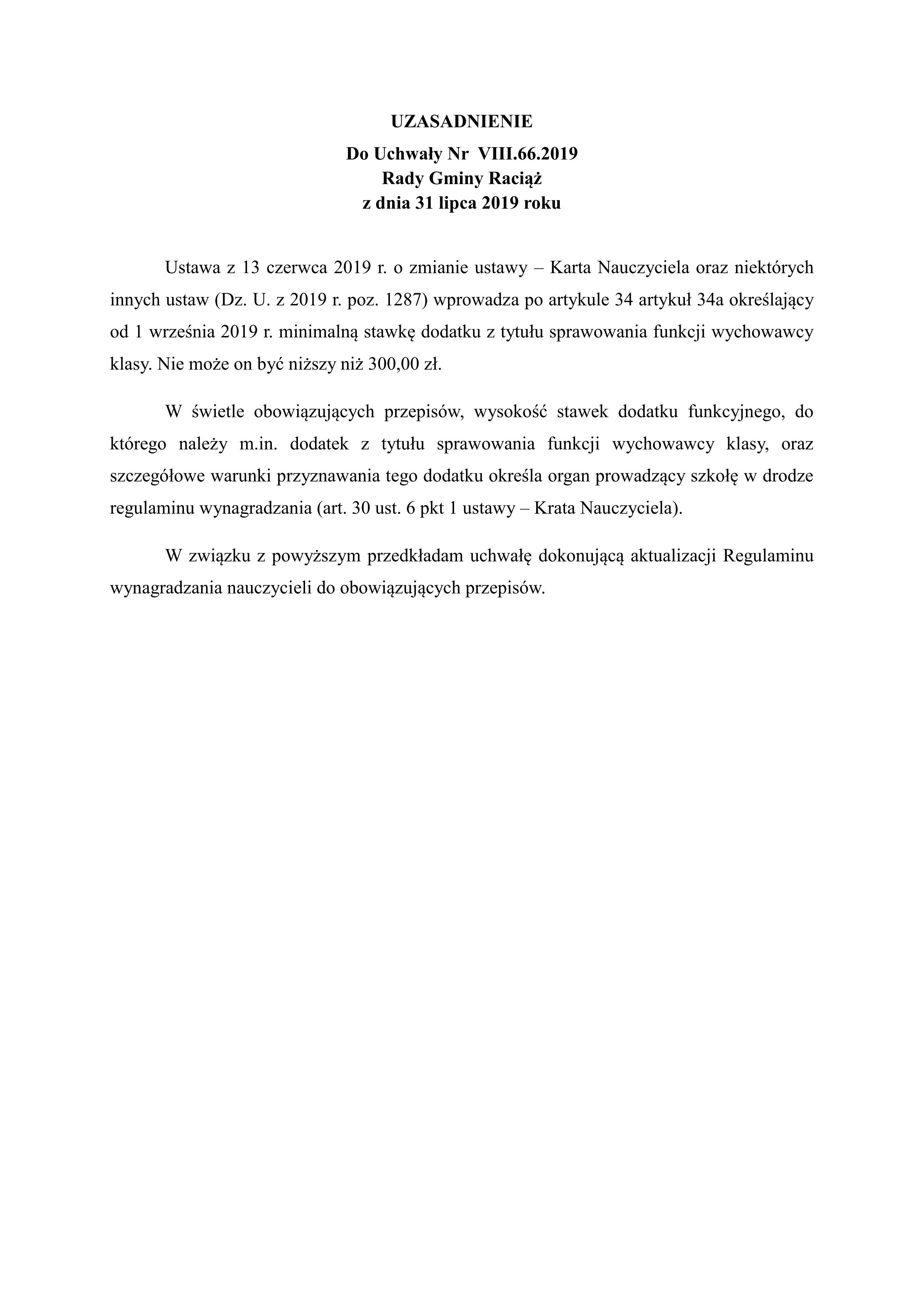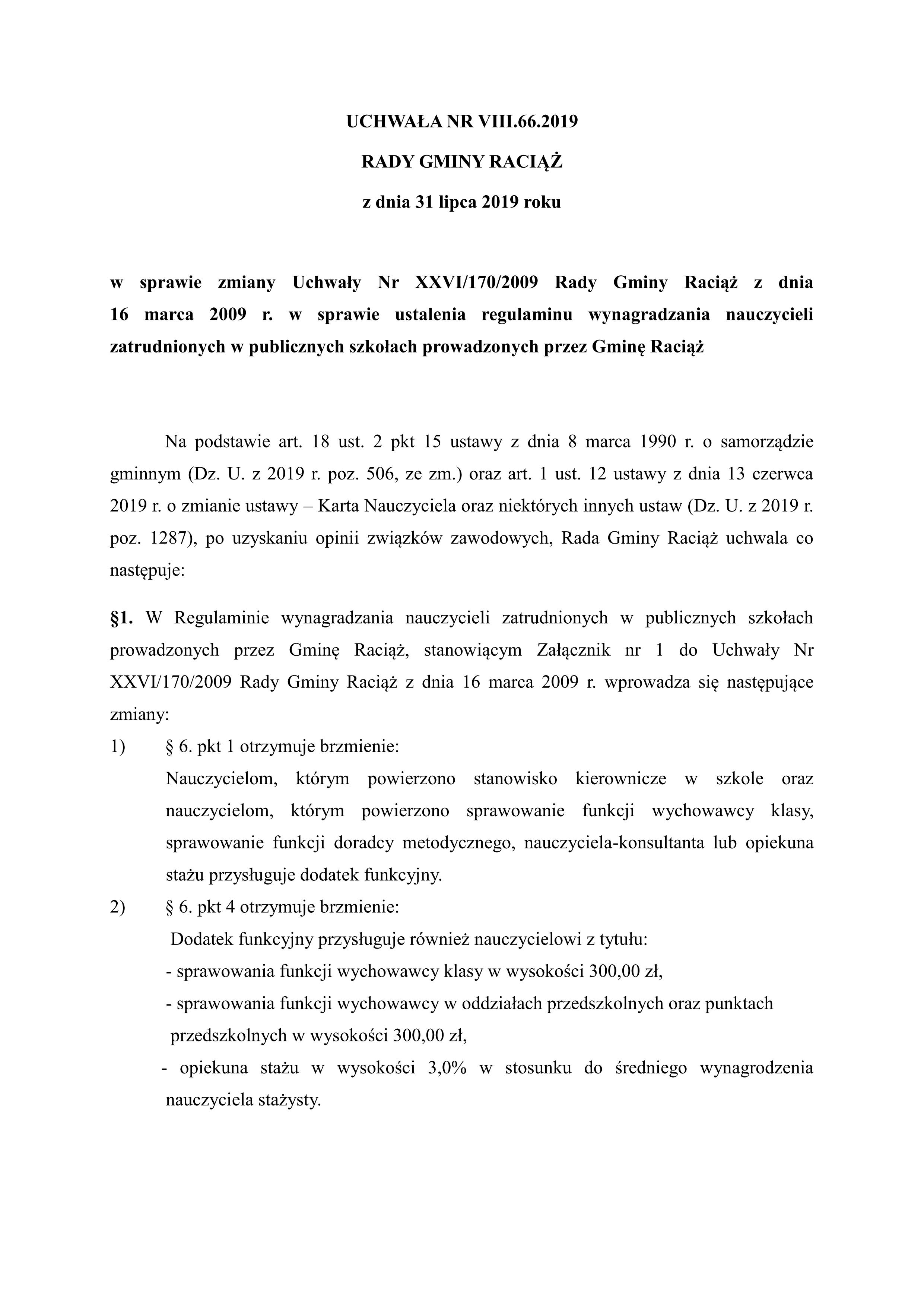 UCHWAŁA Nr VIII.66.2019 RADY GMINY RACIĄŻ z dnia 31 lipca 2019 roku