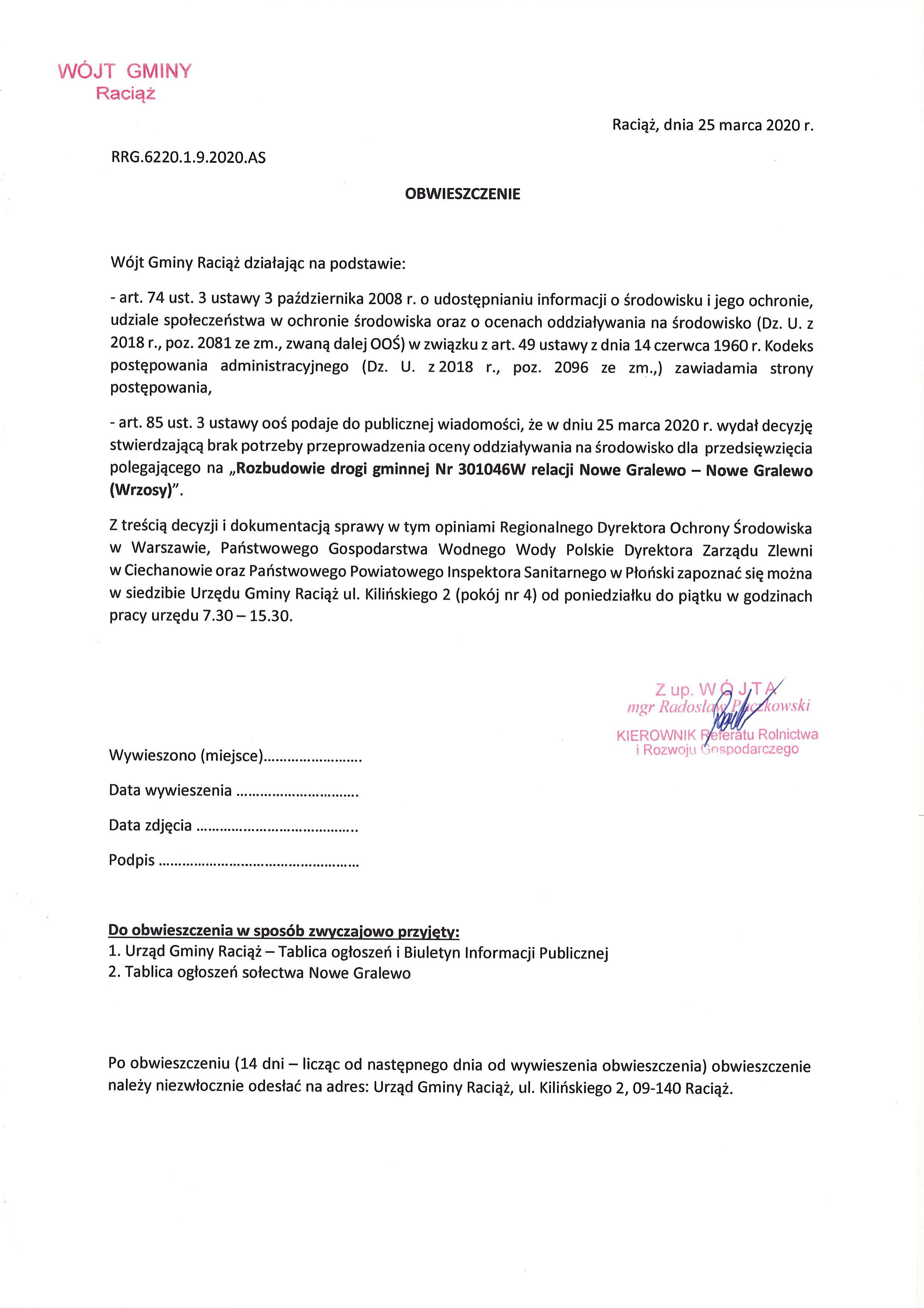 Rozbudowa drogi gminnej Nr 301046W relacji Nowe Gralewo – Nowe Gralewo (Wrzosy)