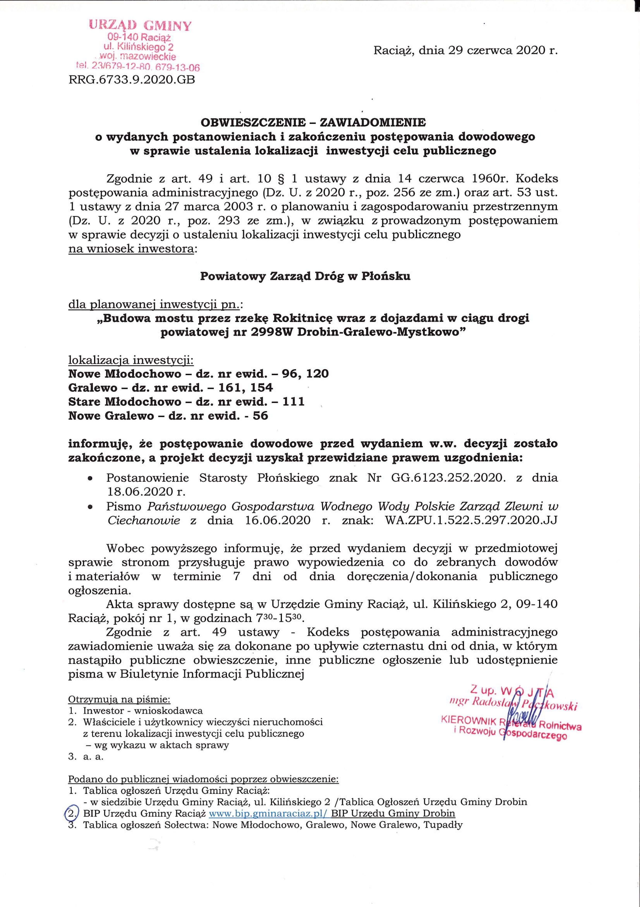 Obwieszczenie Dyrektora Zarządu Zlewni w Ciechanowie
