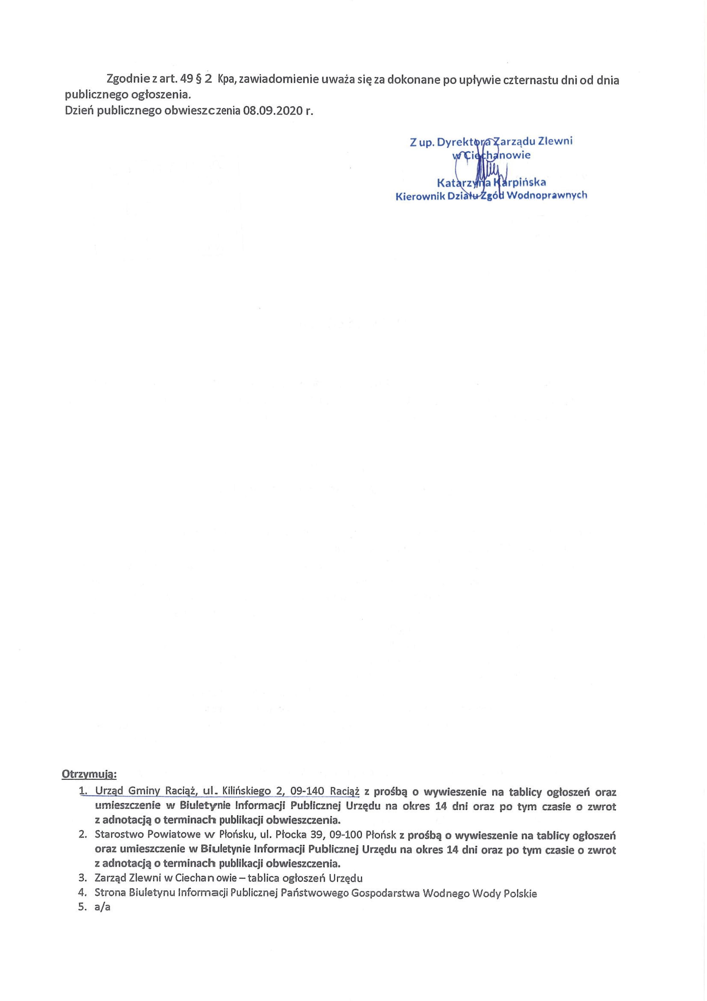 Obwieszczenie wodnoprawne - załatwienie sprawy po terminie droga Druchowo 3