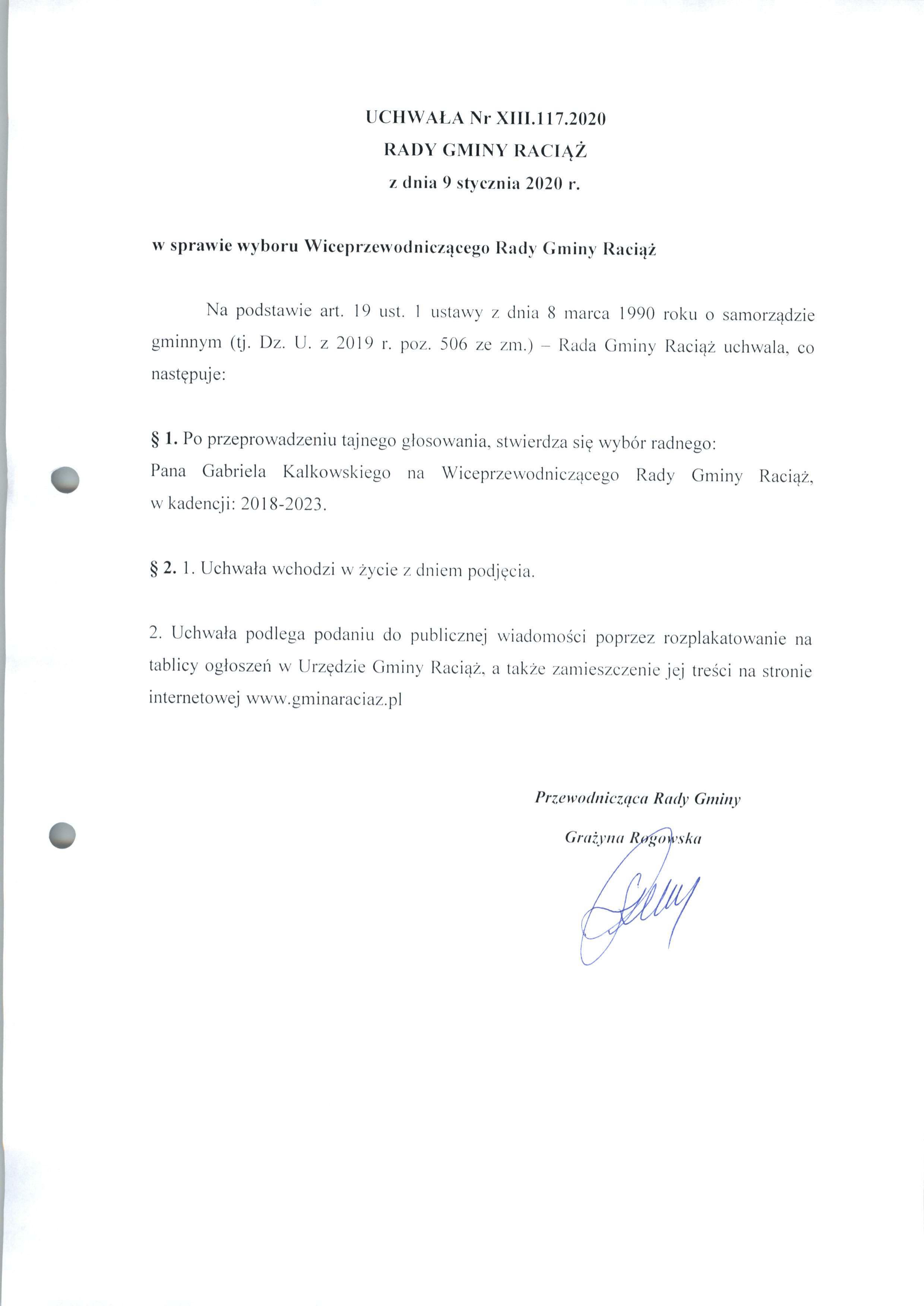UCHWAŁA Nr XIII.117.2020 RADY GMINY RACIĄŻ z dnia 9 stycznia 2020r.