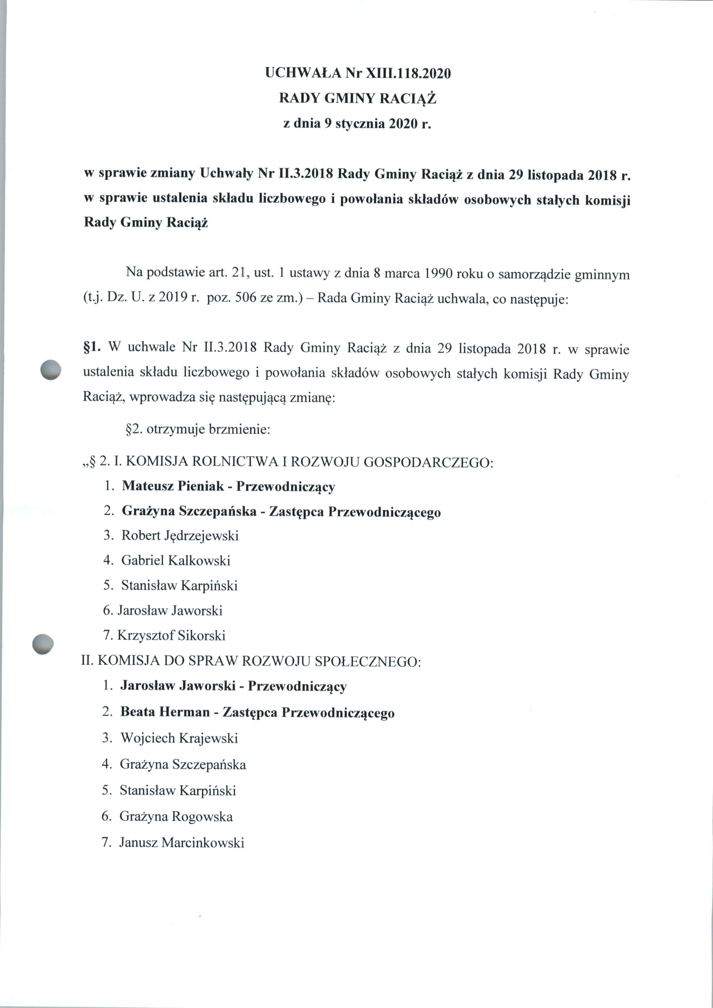UCHWAŁA Nr XIII.118.2020 RADY GMINY RACIĄŻ z dnia 9 stycznia 2020r.