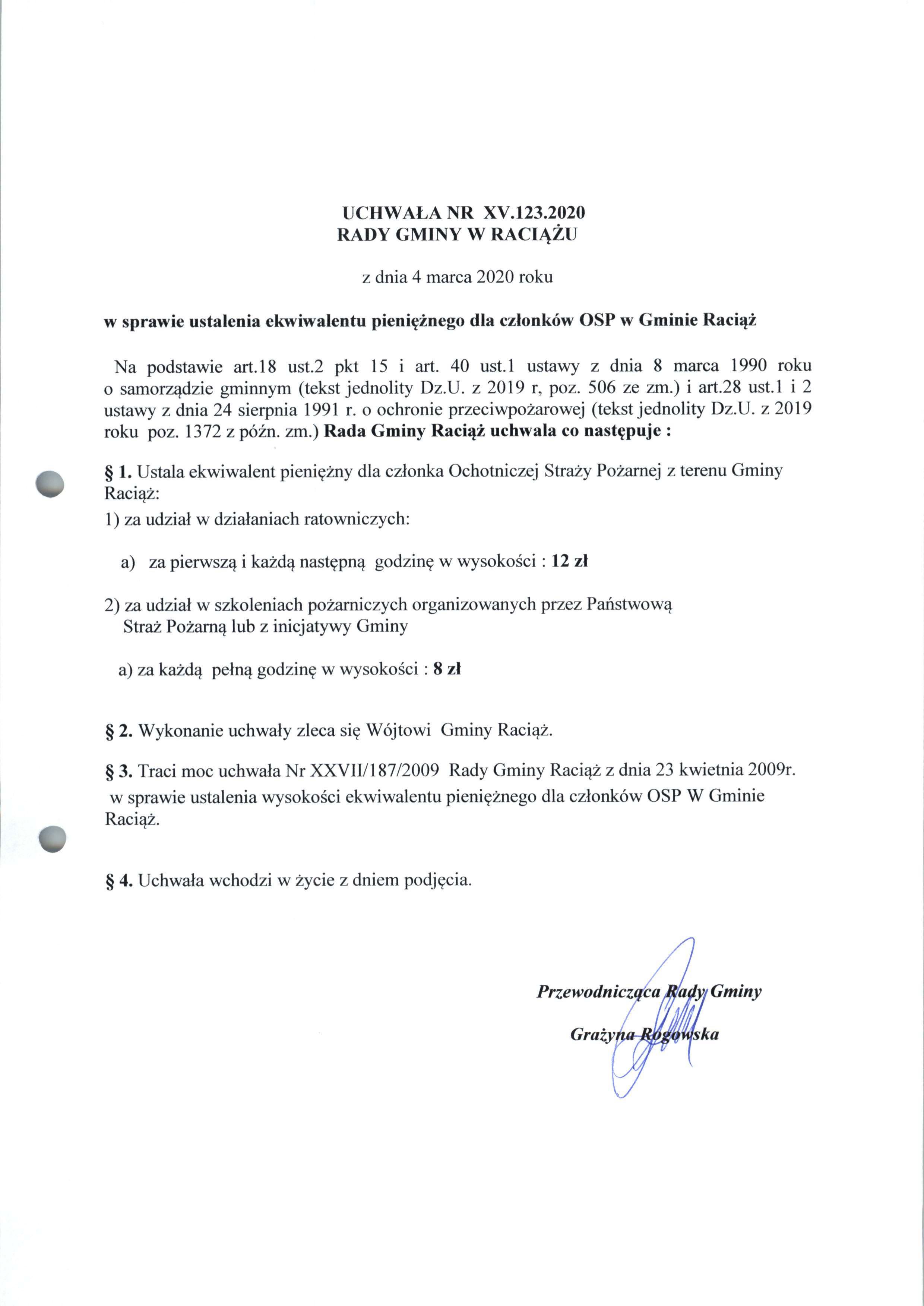 UCHWAŁA Nr XV.123.2020 RADY GMINY RACIĄŻ z dnia 04 marca 2020r.