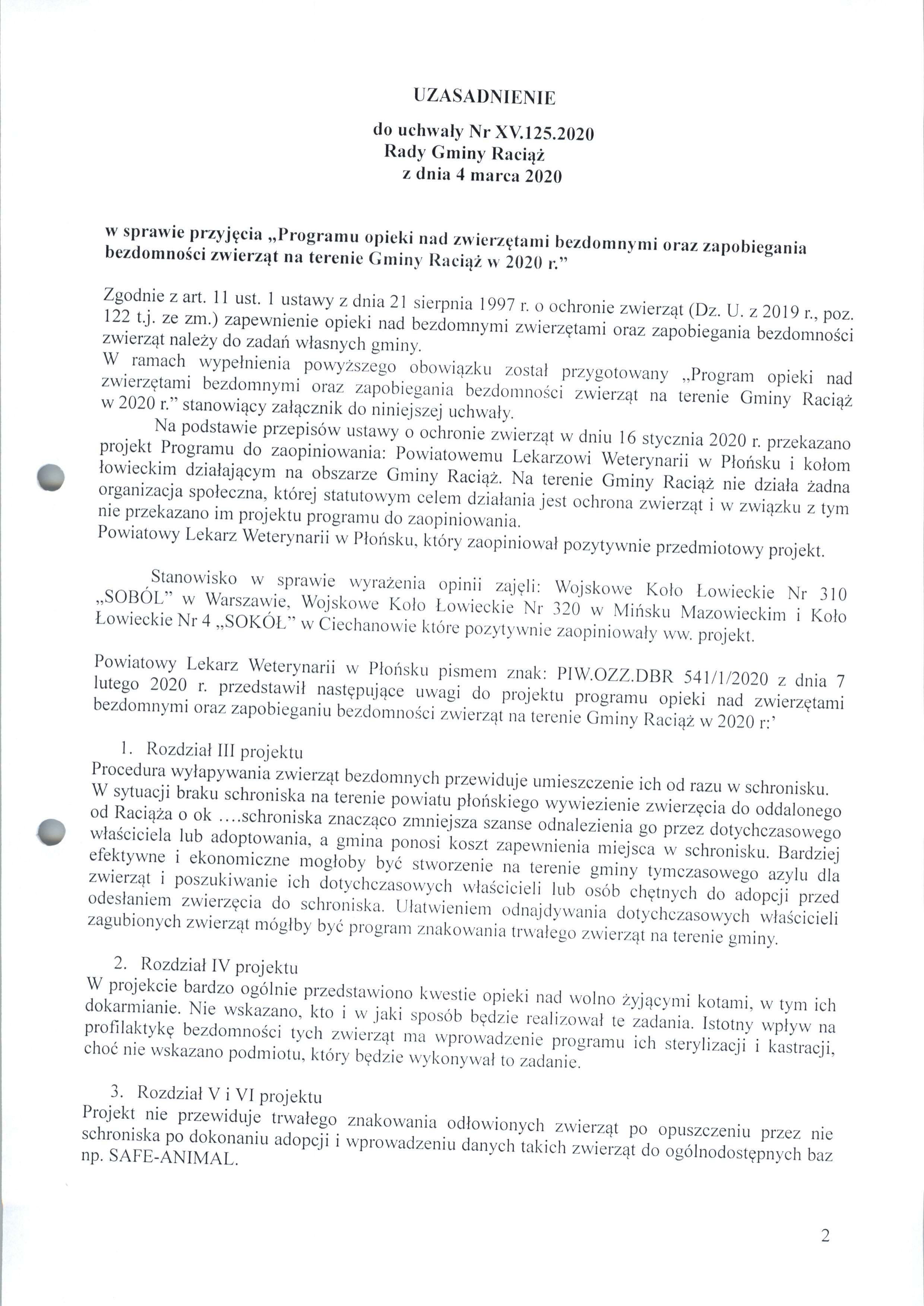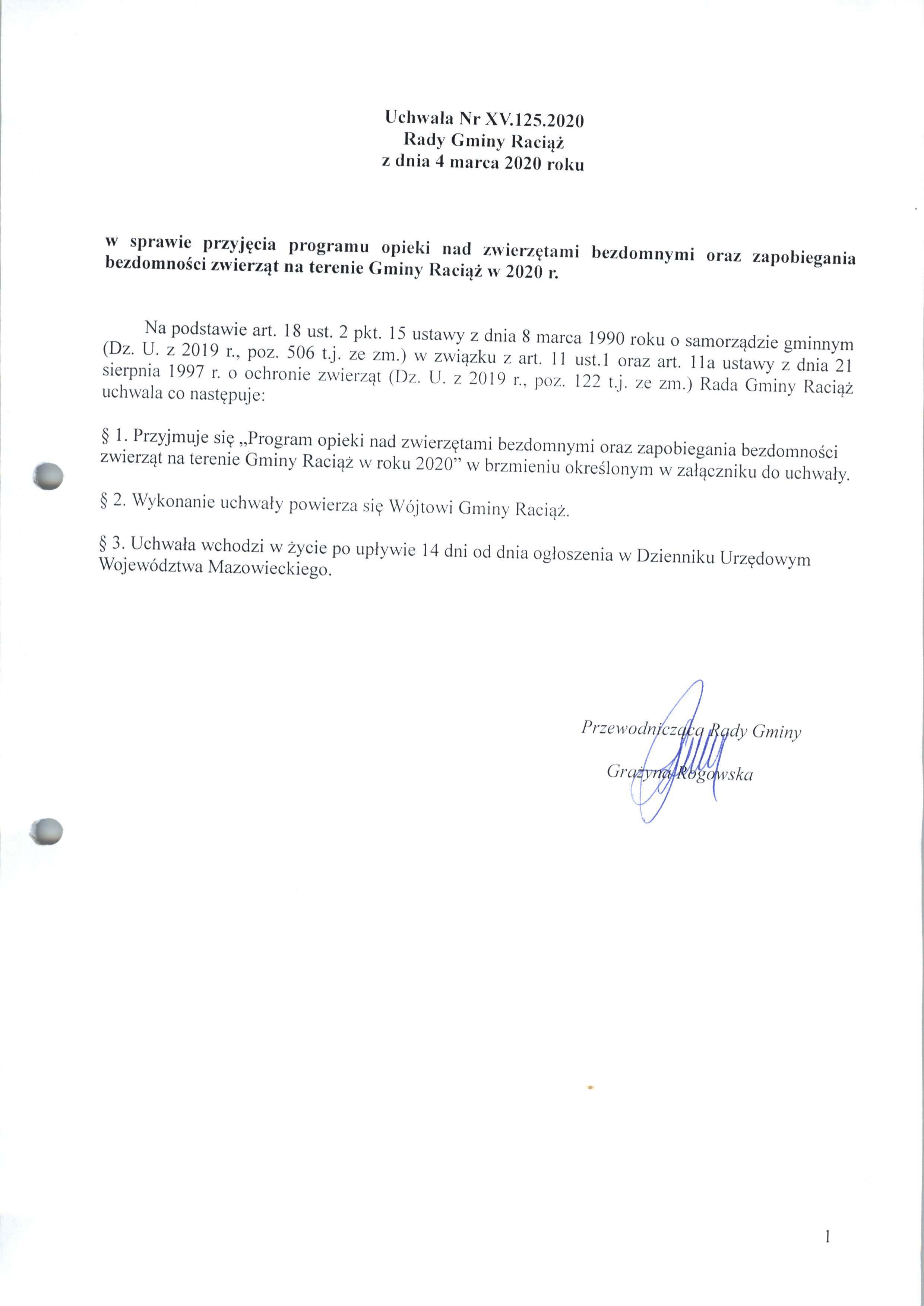 UCHWAŁA Nr XV.125.2020 RADY GMINY RACIĄŻ z dnia 04 marca 2020r.