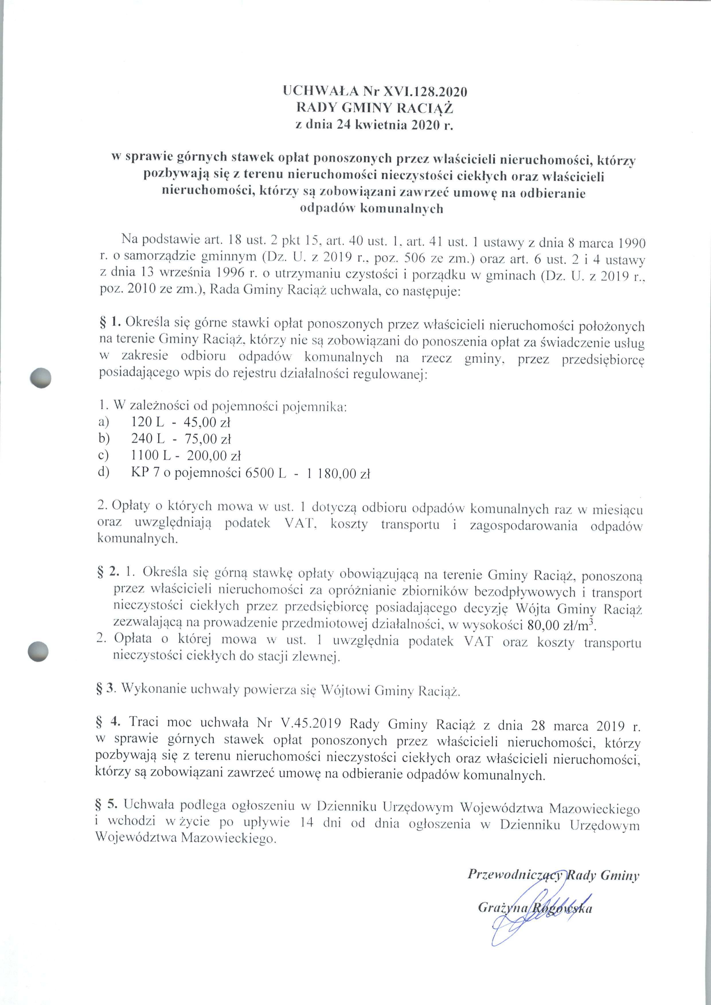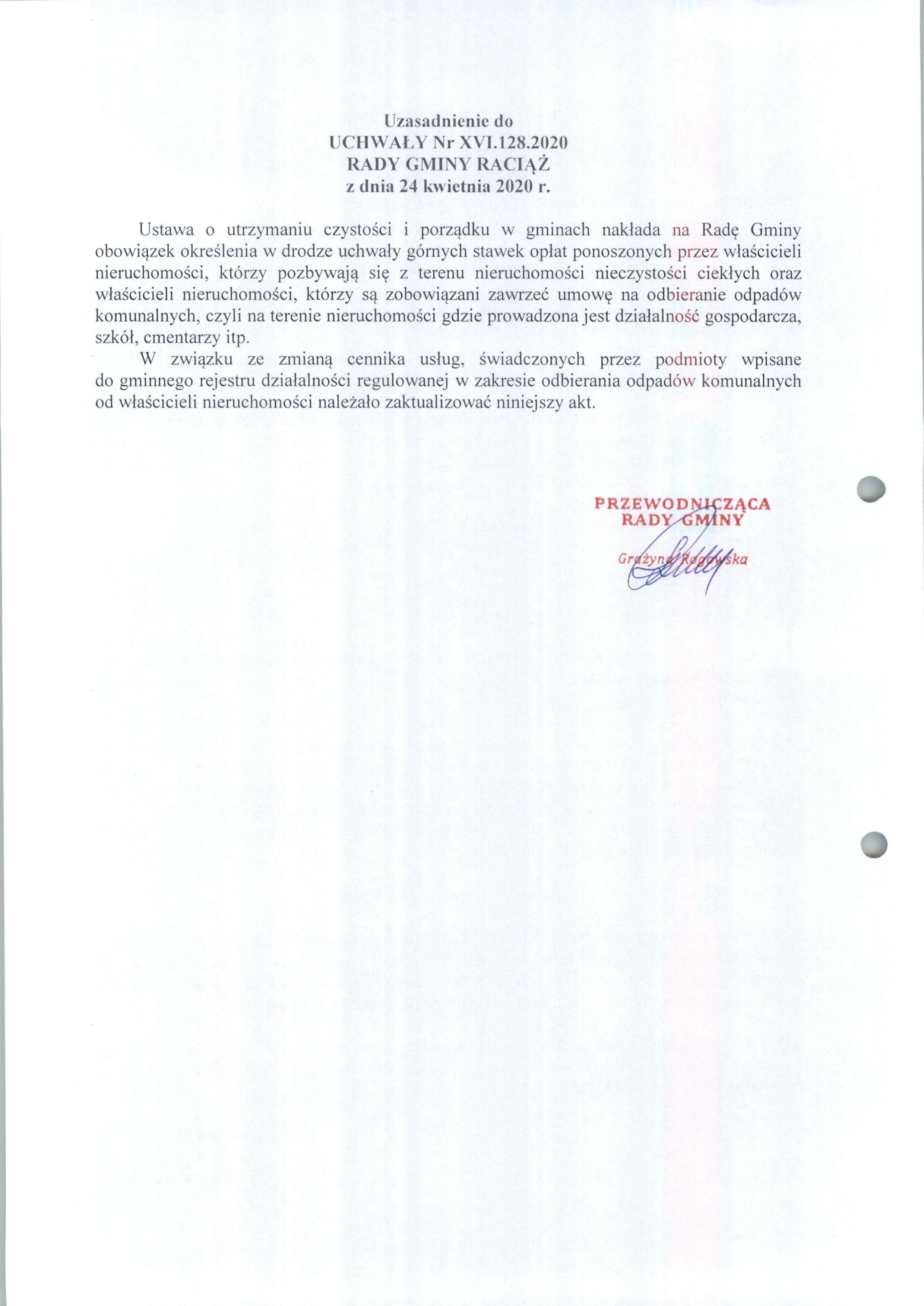UCHWAŁA Nr XVI.128.2020 RADY GMINY RACIĄŻ z dnia 24 kwietnia 2020r.