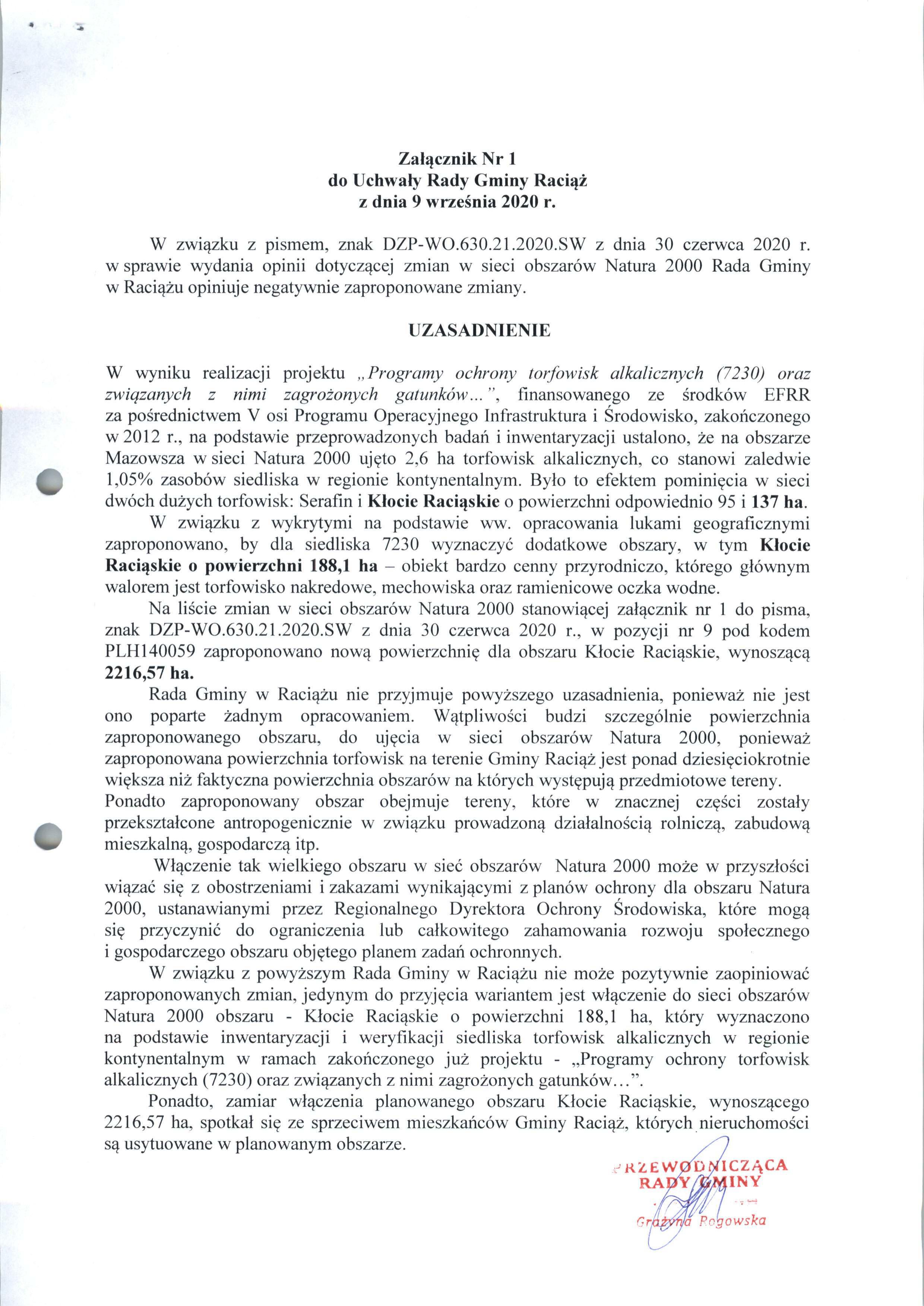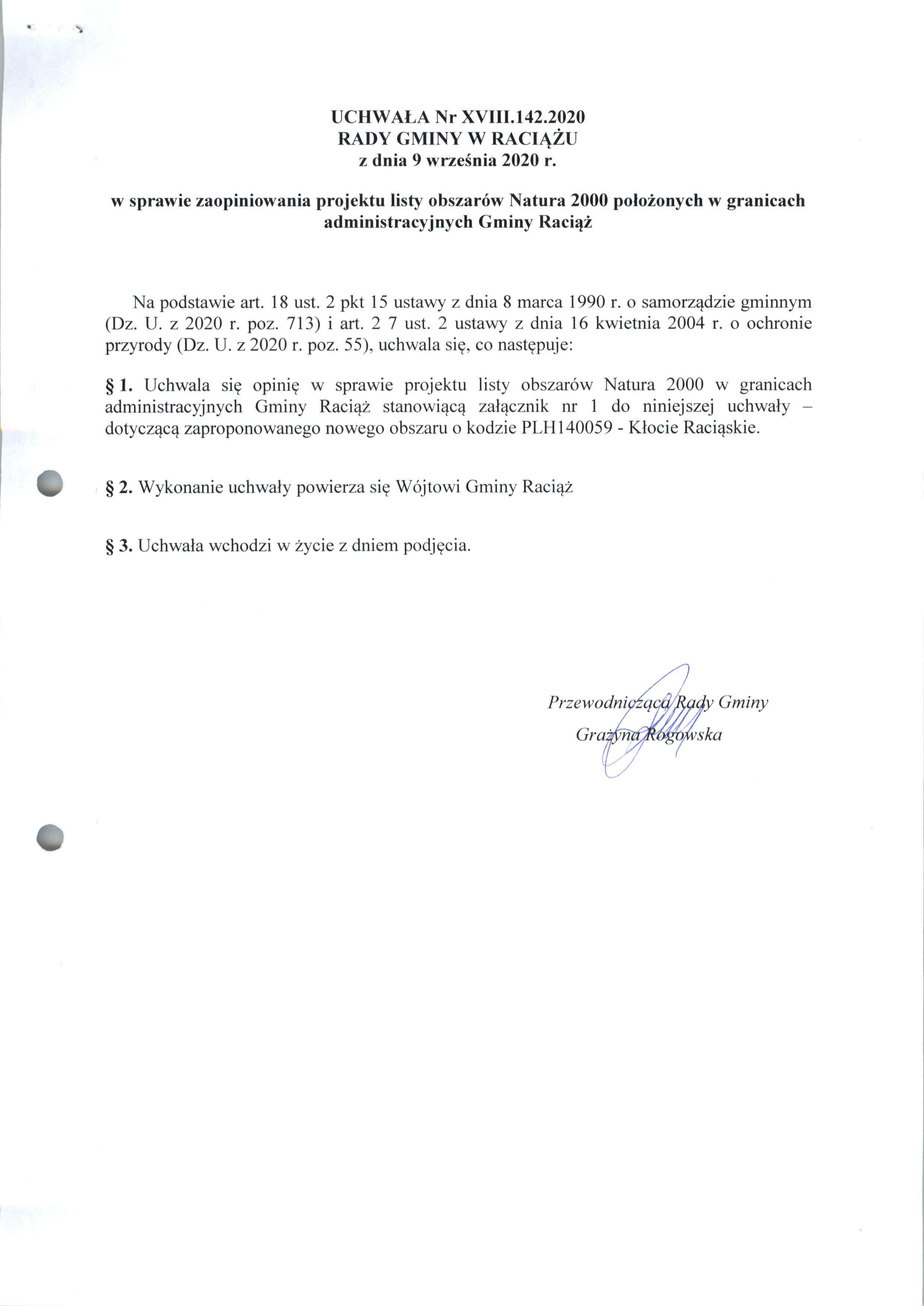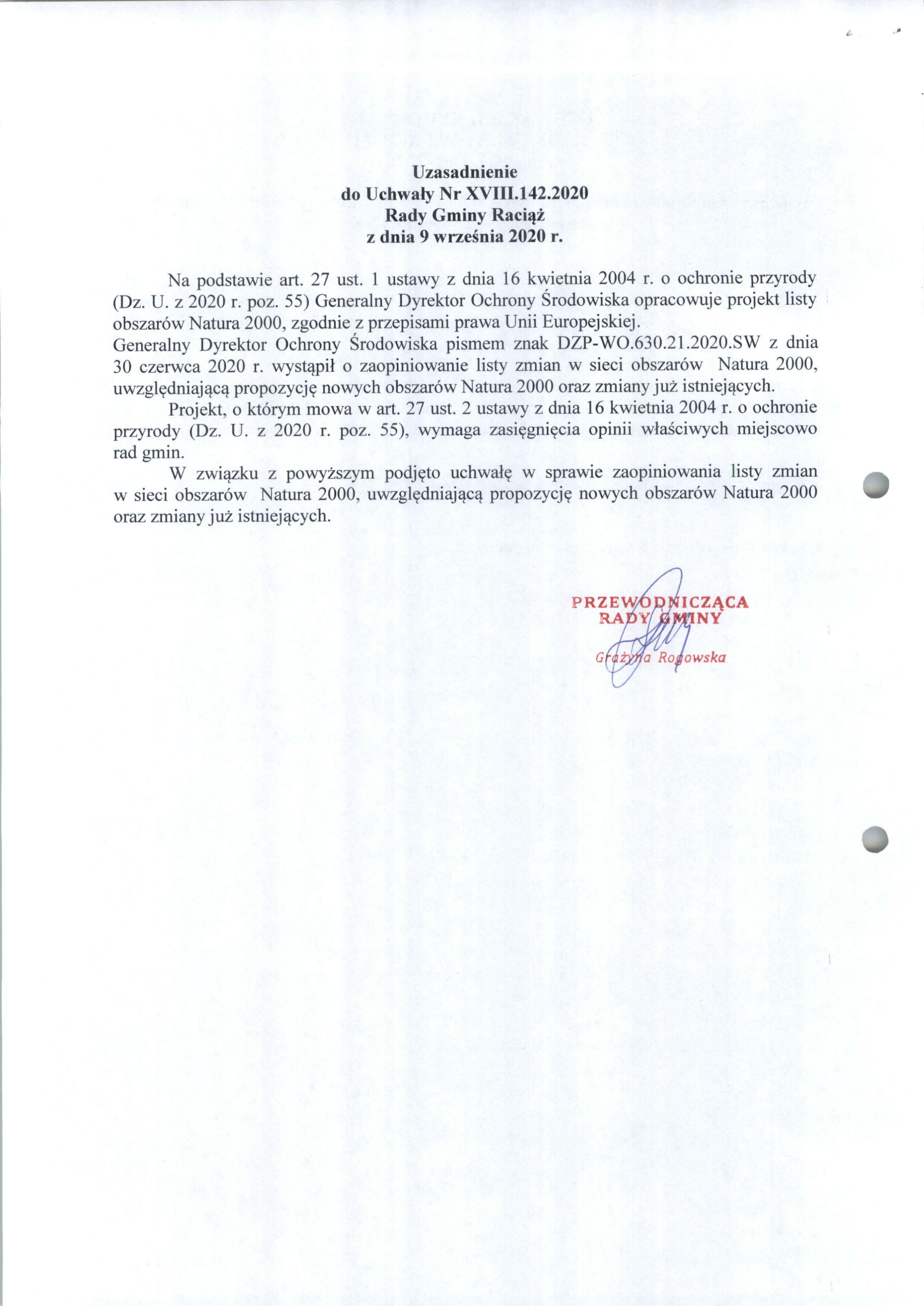 UCHWAŁA Nr XVIII.142.2020 RADY GMINY RACIĄŻ z dnia 9 września 2020 roku