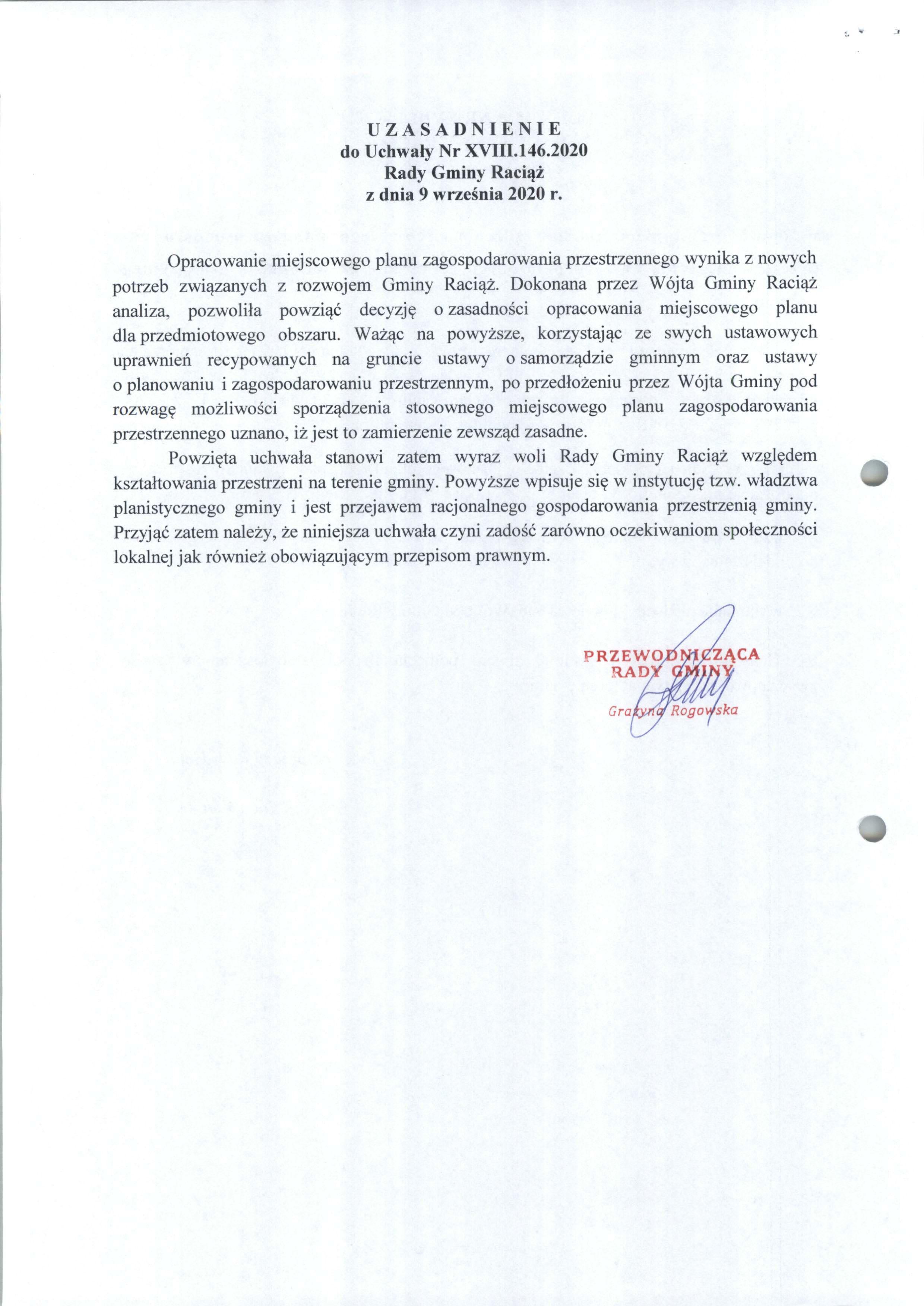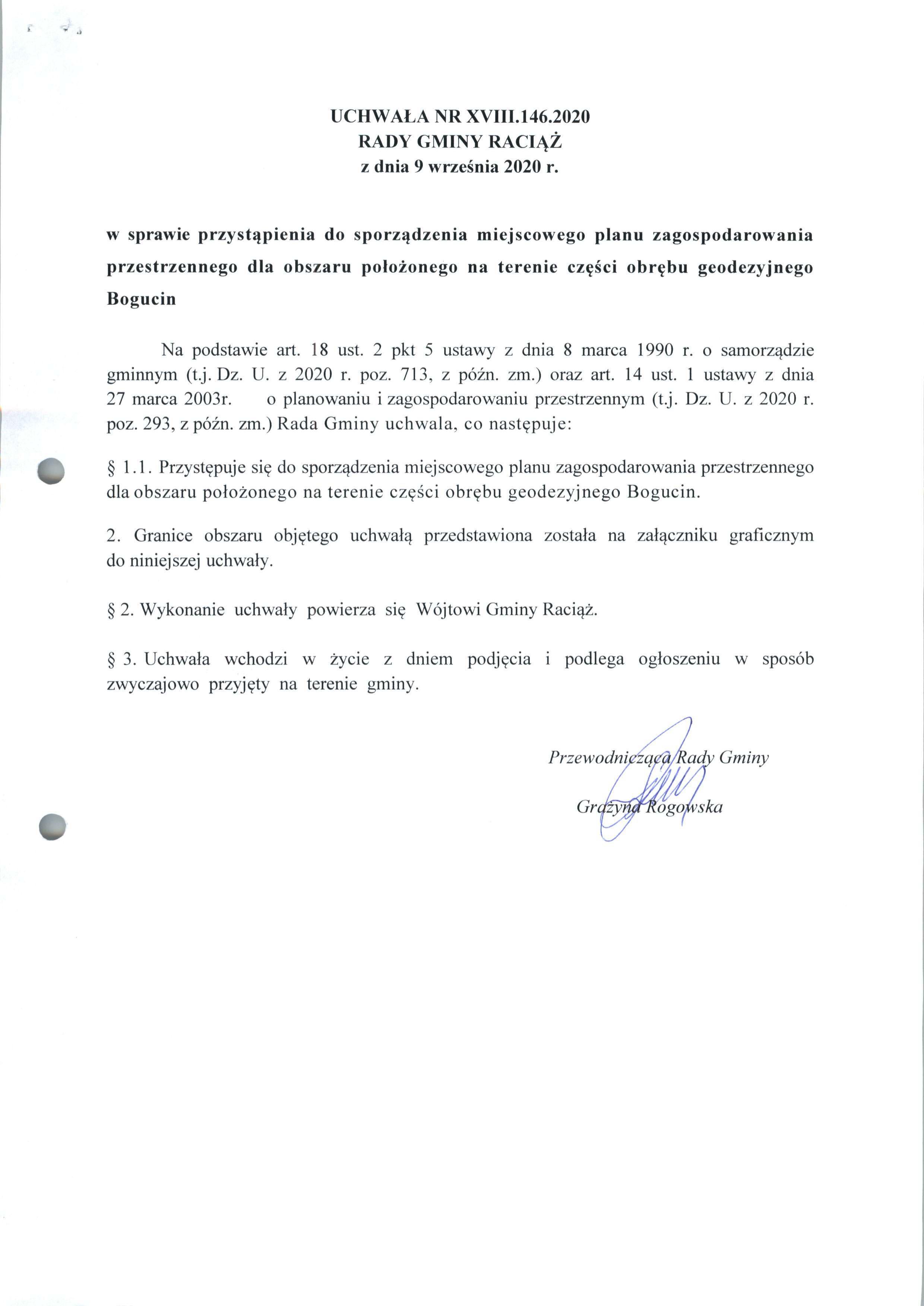 UCHWAŁA Nr XVIII.146.2020 RADY GMINY RACIĄŻ z dnia 9 września 2020 roku